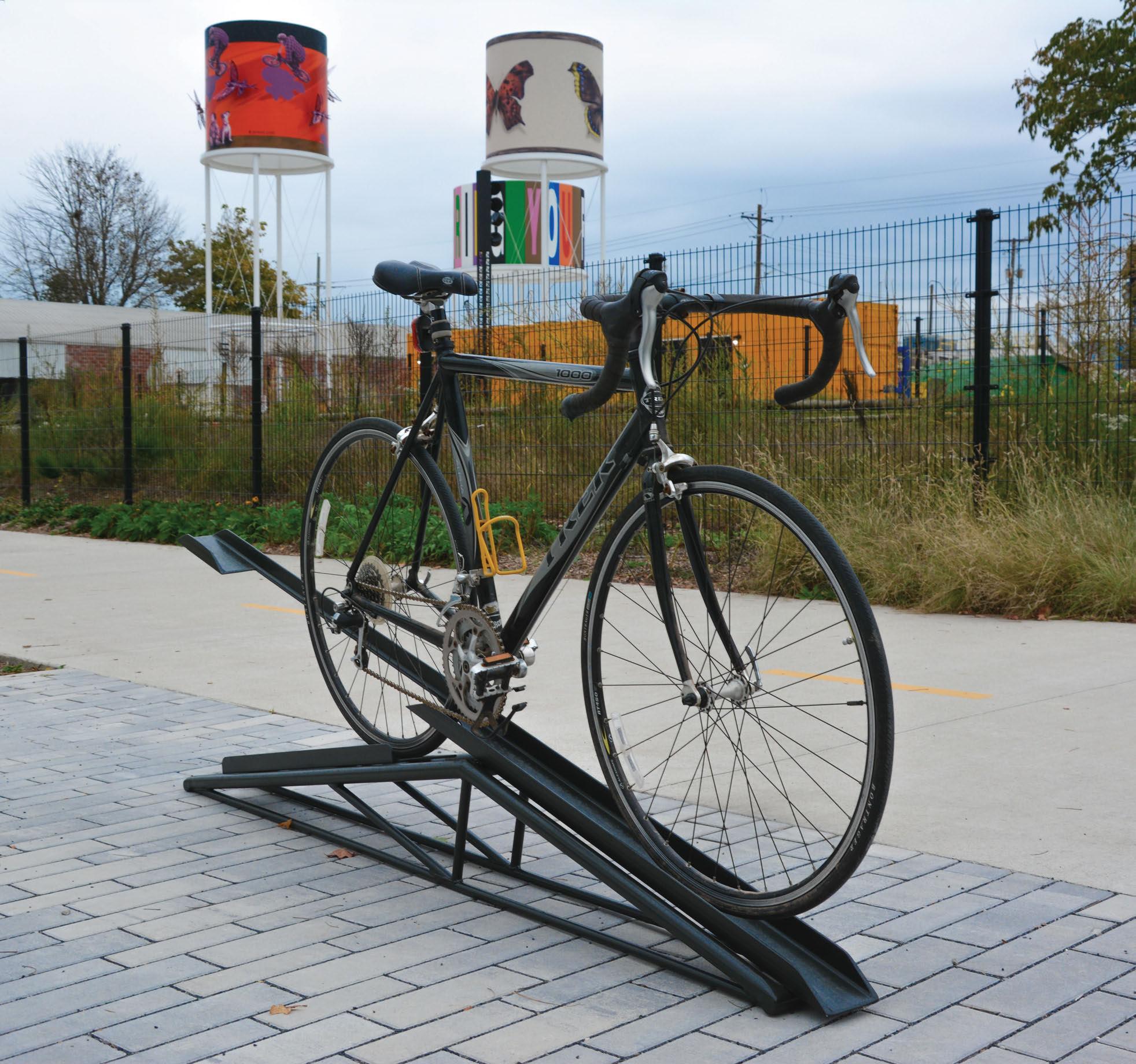 The main driving factor behind the approach to our design was to engineer a bike rack that provides a unique mechanical experience that is fun to use. The final design consists of a maniuplated steel c channel welded to a steel hollow tube base upon a fulcrum point. The user guides their bike along this c channel which begins to shift its orientation in a see-saw motion. As its shifted by the bike’s weight, the back end of the c channel raises to rest around the bike’s back wheel. To release the bike from the bike rack, the user simply continues to guide their bike forward over the fulcrum point and off the bike rack, causing the c channel to return to it’s original position.