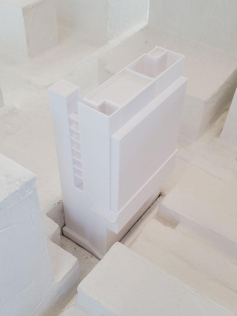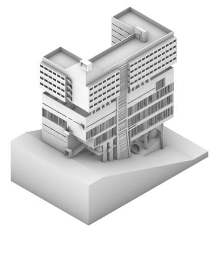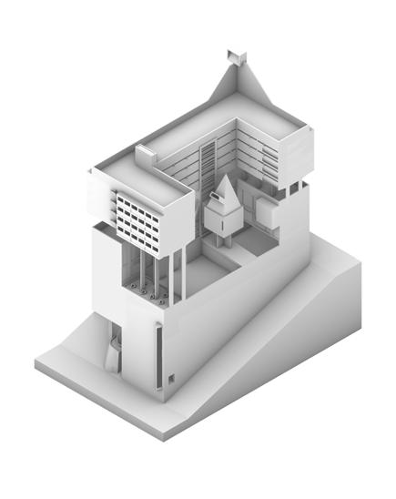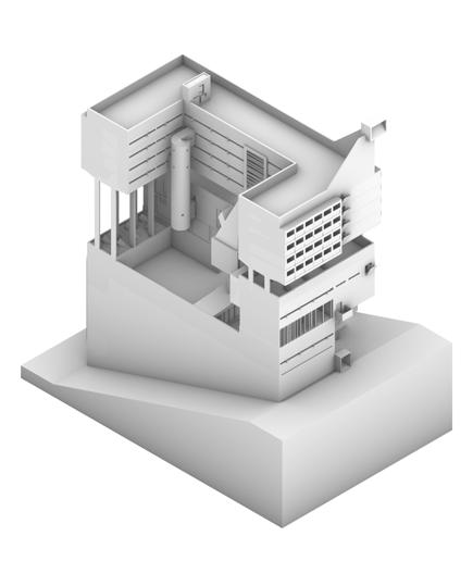 At the start of my studio on the Proto-Urban Vertical Monastery I was tasked with a precedent analysis in the form of a deconstruction and reconstruction of Le Corbusier’s La Tourette. In this exercise, we were given a 3d model of La Tourette and were asked to discover its spatial qualities and organization, and slice up and reorganize the model to fit it into a sloped, 150’ x 75’ site. The goal was to maintain the existing spatial qualities and relationships of La Tourette as well as the general character of the building. Through this exercise I gained a deeper understanding of the purpose of the cloister and how the sacred, working, and residential spaces are related and treated. The modernist architecture of Le Corbusier helped create a bridge between the traditional monasteries created before the 20th century and the hyper urban vertical monastery we were tasked with designing in this studio. Through this exercise I carried over to my proposal the relationship of the cloister to the other spaces as well as the relationship between public and private spaces and the organization of the sacred spaces.