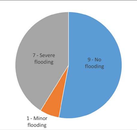Based on the responses received, nine of the respondents did not experience flooding, one experienced minor flooding, and seven experienced severe flooding All of the respondents who experienced flooding were located within the 100-year flood zone while those who did not experience flooding were located within the 500-year flood zone.