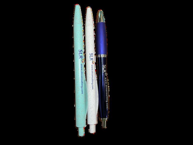 Our recycled pens (left & center) come in a variety of colors. The executive pen option (right) is a heavy duty, professional pen. A classic choice for brand building.
