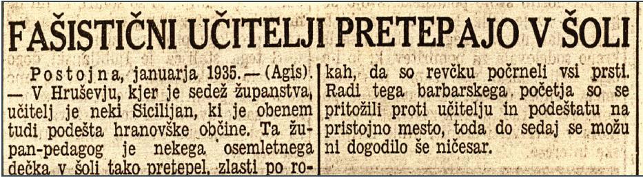 Protikulturni zakon o poitalijančenju slovanskih ljudskih šol ni še izšel, ti še objavljen v uradnem listu, torej niše veljaven, toda šolska oblastva Julijski Krajini so ga začela že na vsej črti izvajati. To postopanje je protizakonito in zato so vsi ukrepi šolskih oblastev neveljavni, za naše ljudstvo neobvezni in mi jih ne priznavamo.