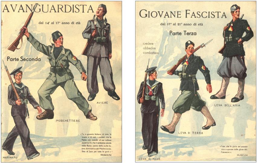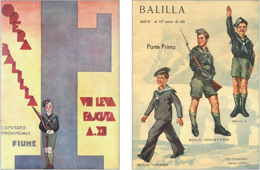 Ko so nekoliko odrasli so okrog 8 leta starosti fantki postali Balille, dekleta pa Piccolle Italiane. Fantje so kot Balille, ime so dobili po nekemu italijanskemu uporniku avstrijskim cesarjem, že postali mali Mussolinijevi vojščaki, ki so jih vzgajali v bodoče bojevnike za novi imperij. Ti fantki so morali imeti posebne črne uniforme, ki so jih morali starši seveda plačati, vsako soboto pa so se urili z lesenimi puškami. Kasneje so za njih izdelali tudi posebne male a prave puške. Tem sobotam so rekli »sabato fascista« in če so se na teh vajah dobro izkazali, so jih poslali na osvajalne vojne, če ne drugega za »kanon-futer«. Ampak puško so dali le tistim, ki so sprejeli italijanstvo, tisti ki ga niso so šli tako kot več deset tisoč v posebne bataljone. To so bile posebne napol kazenske enote, ki so jih imeli zaprte v kasarnah, da ne bi odšli v partizane, ali pa so kopali vojaške obrambne jarke in opravljali druga dela.