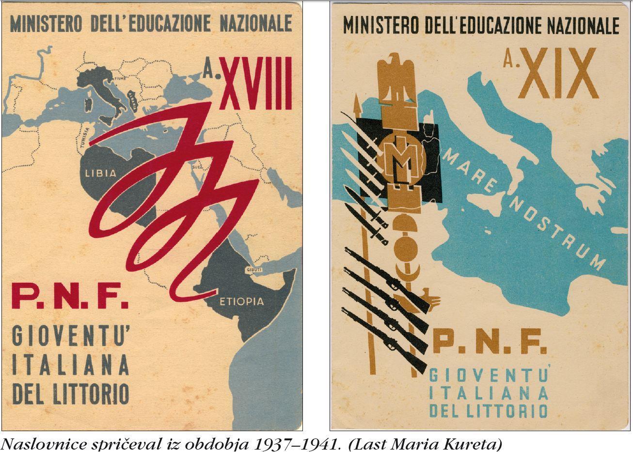 »Za poitalijančevanje in fašizacijo slovenske mladine so delovale posebne ustanove in organizacije. Za predšolsko mladino je že pred vojno delovala Lega nazionale, 1919 se ji je pridružila še Opera nazionale di Assistenza all’Italia Redenta, ki je po 1929 prevzela vso skrb za otroške vrtce in rekreacijske zavode ter za tečaje italijanščine za odrasle. Intenzivno so delovale še množične organizacije fašistične stranke, ki naj bi mladino tudi fašizirale. Predšolske otroke je od 1936 povezovala organizacija Figli della Lupa, šolske od 1926 organizacija Balilla za dečke in Piccole italiane za deklice, vojaško organizirana Avanguardia fascista je povezovala mladince od 14. do 18. leta, dekleta v isti starosti pa so spadale v organizacijo Giovani italiane. Vse te organizacije so bile od 1937 povezane v zvezi liktorske mladine, Gioventù italiana del Littorio GIL, medtem ko je za univezitetno mladino obstajala organizacija Gruppo universitario fascista GUF. Čeprav je bil vpis v organizacije načeloma prostovoljen,