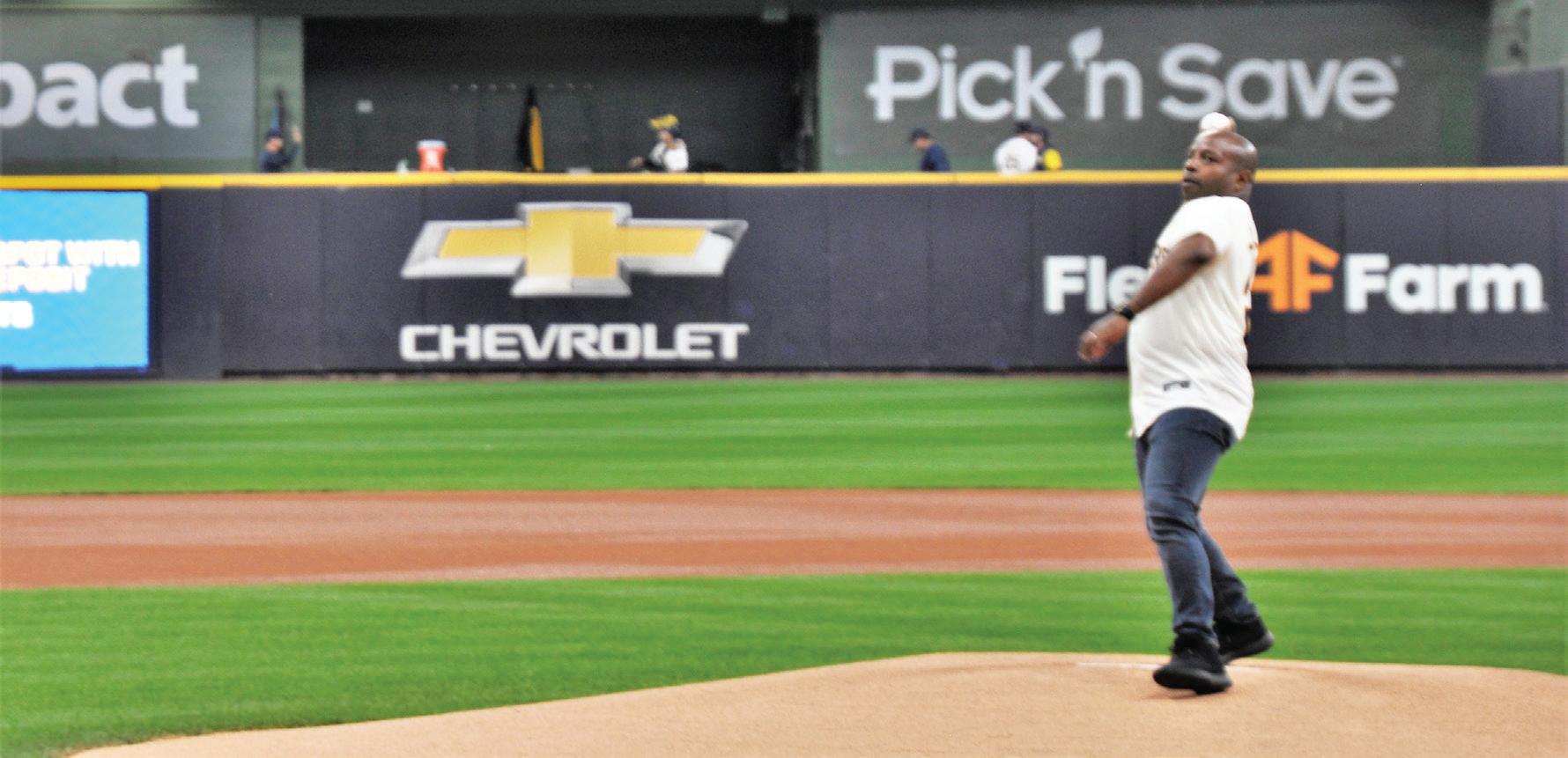 Mayor Johnson throws out first pitch at Brewers vs. Marlins game