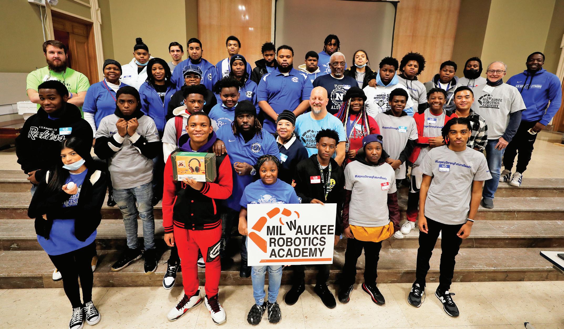 On Thursday, December 8, 2022, North Division Community High School in partnership with Milwaukee Robotics Academy (The Academy) hosted the first annual RoboFest Hackathon. Thirty North Division scholars (grades 9-12) received four hours of engineering design education at Messmer Preparatory School, 3027 N. Fratney St. The mid-day field trip was supported by NDHS Alumni Association, school staff, and fourteen Academy volunteers in Science, Technology, Arts, and Math (STEAM) professions across Milwaukee’s Fortune 500 firms.