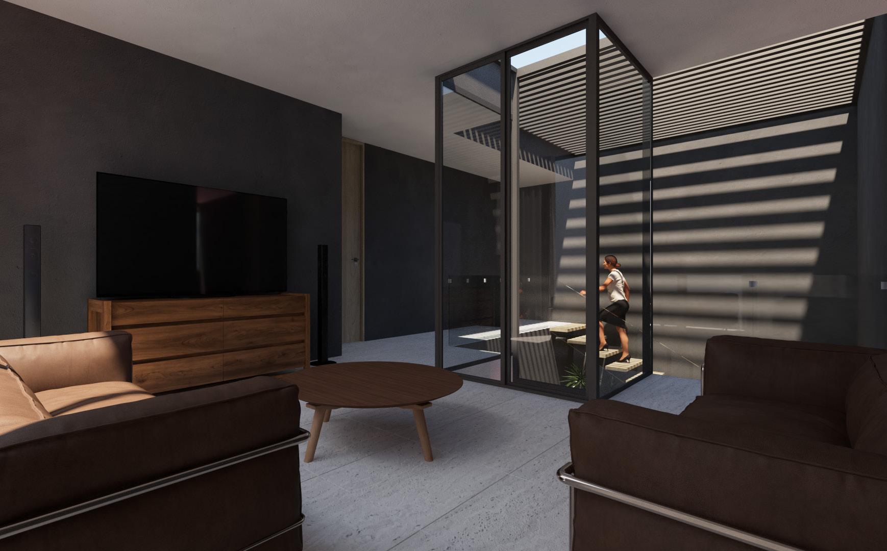 Esta vivienda unifamiliar se emplaza en un terreno de 10 x 20 m dentro de un fraccionamiento privado para una familia conformada por una pareja joven con dos hijos. Un cubo de luz al centro del proyecto genera una fuga visual que permite ver hacia el fondo del terreno, a un muro lleno de vegetación en el patio trasero que le da fluidez y una sensación de amplitud a los recorridos cada que se abre la puerta de acceso.