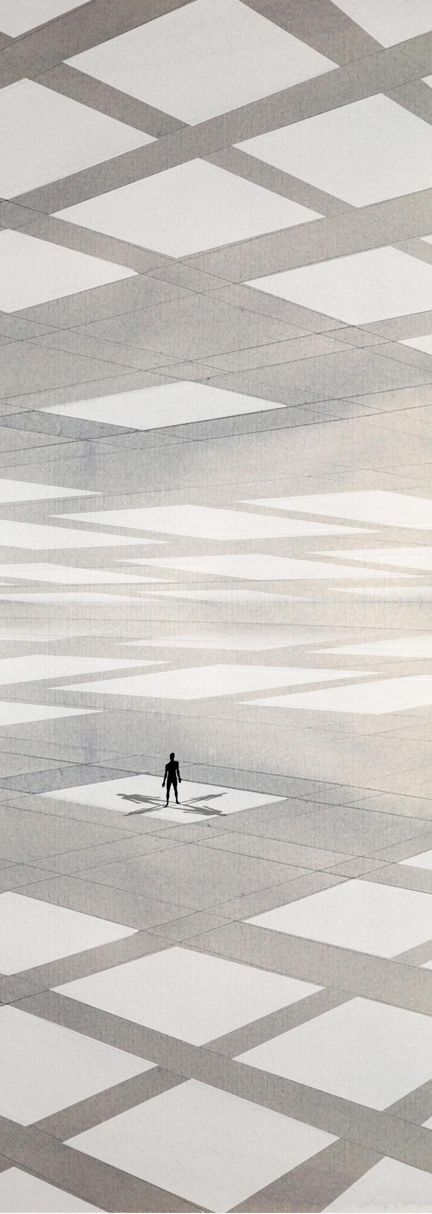 Accesos I, 2020 Acuarela 17.4 x 24.8 cm Accesos II, 2020 Tecnica Digital 34 x 24 cmProfecía es una obra que se sitúa en una dimensión desconocida, las plataformas de color blanco son la única manera de avanzar y cada una de ellas nos transporta a otra dimensión que de igual manera desconocemos.