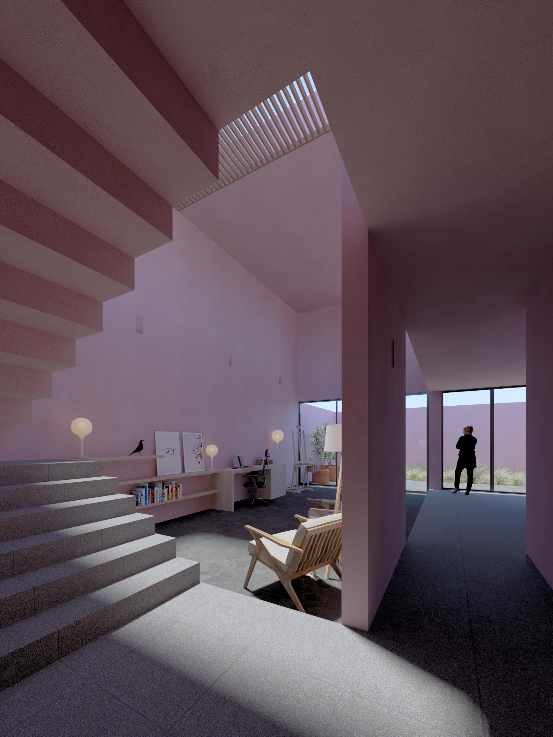 El proyecto nace de la premisa de resolver una vivienda tipo loft para un artista. El predio se ubica dentro de un fraccionamiento privado, por lo que la intimidad del futuro usuario es una de las prioridades de este proyecto, la fachada principal limitan las vistas que se tienen hacia el interior.