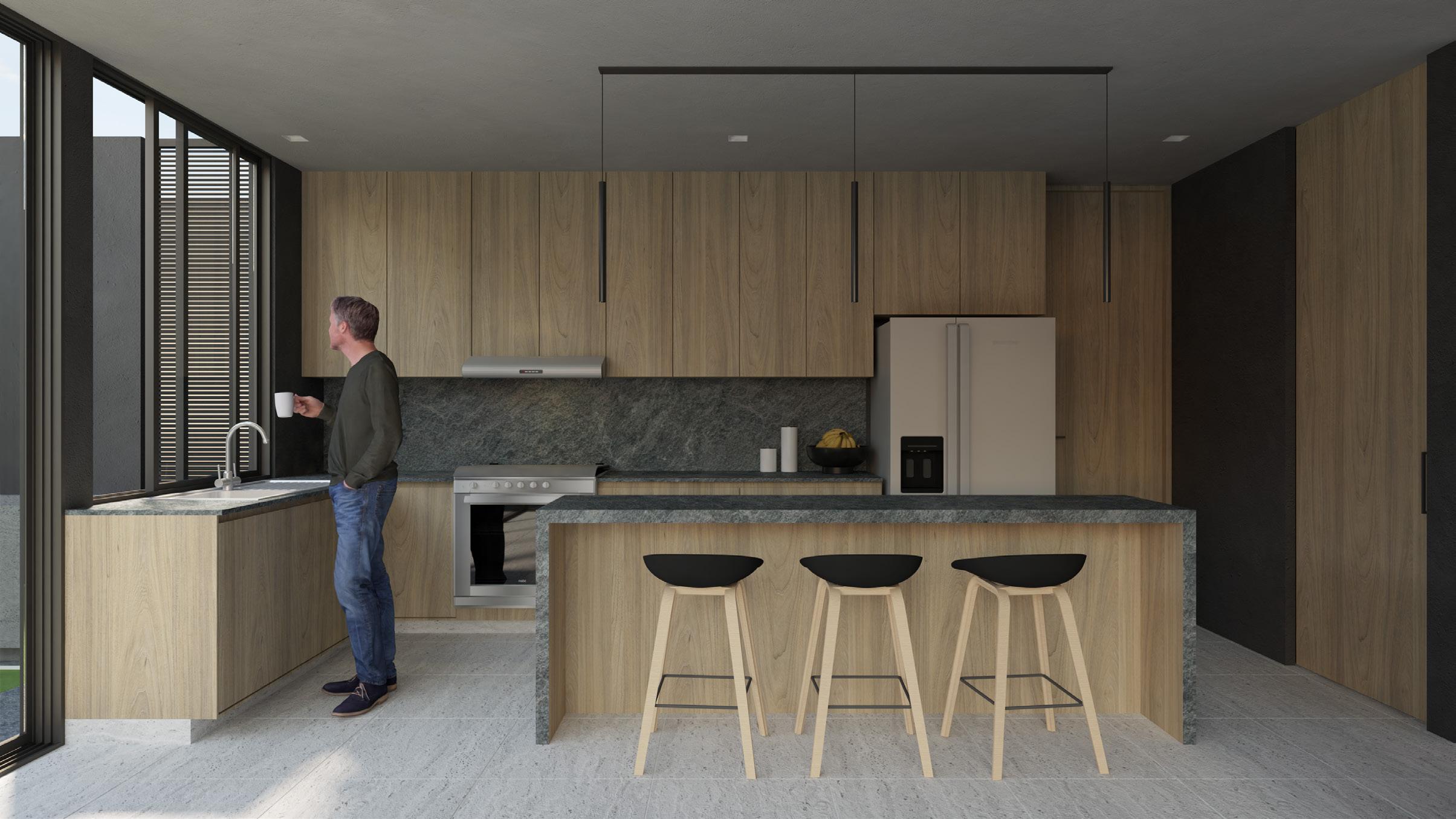 La doble altura que se combina con la sala de estar genera una atmosfera que invita a la reflexión y busca potenciar la creatividad, el sentirse libre y con la capacidad de hacer lo que sea que se proponga el habitador.