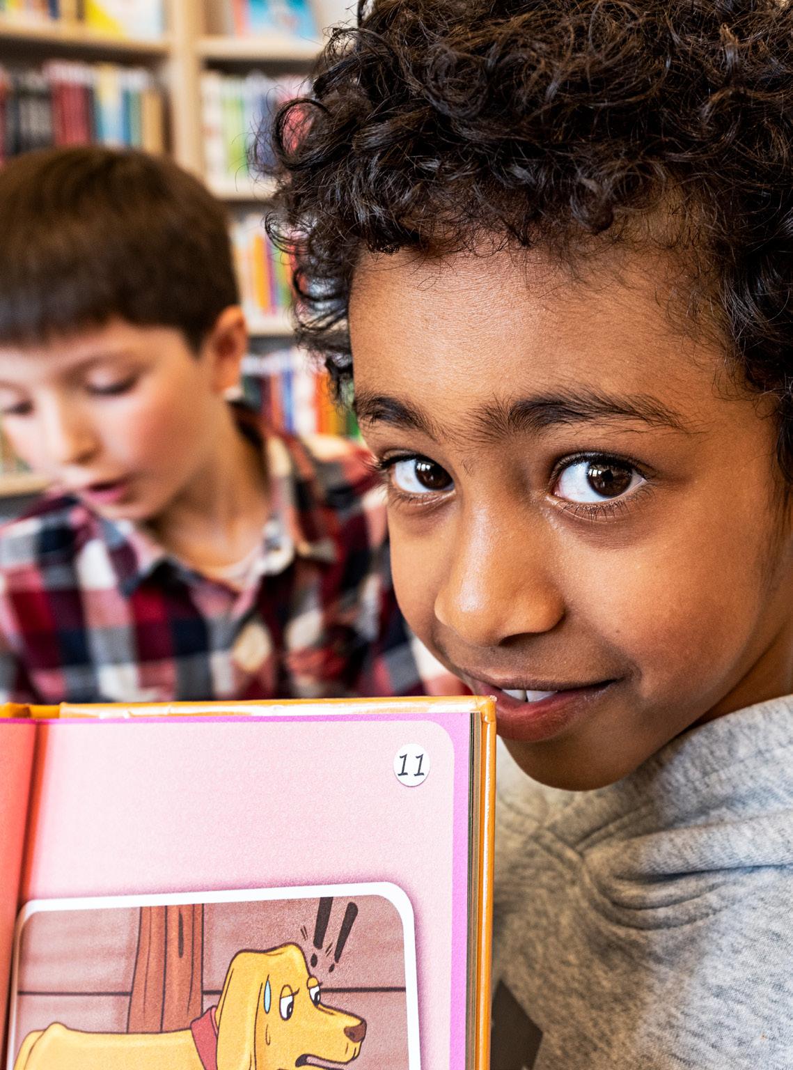 De storläsande pojkarna i årskurs 1 är ett nytt fenomen. De kommer ofta till biblioteket, tipsar varandra om böcker och har en läsglädje som smittar.