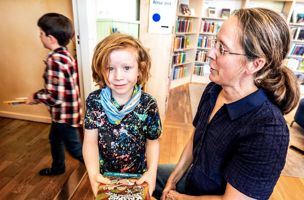 De storläsande pojkarna i årskurs 1 är ett nytt fenomen. De kommer ofta till biblioteket.