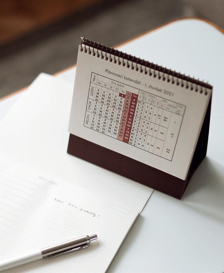 Nejvíce mi pomáhá měsíční plánovač. Můj manžel hraje profesionálně fotbal, a abych se ho nemusela neustále ptát na termíny, zapisuje do něj všechny tréninky a zápasy. Já zase zapisuji svoje schůzky, akce nebo rodinné sešlosti. Podrobnosti si pak píšu ještě do diáře.