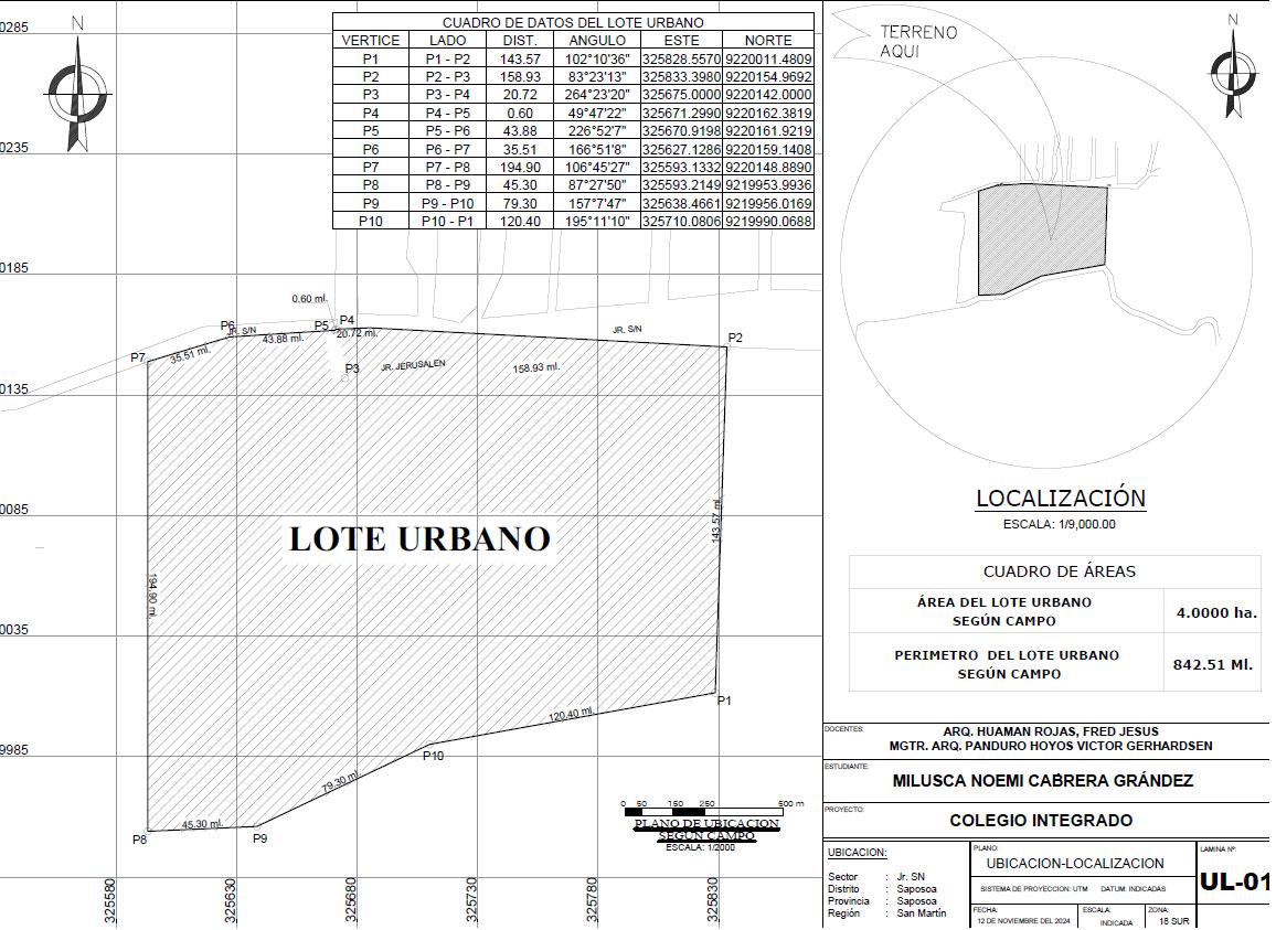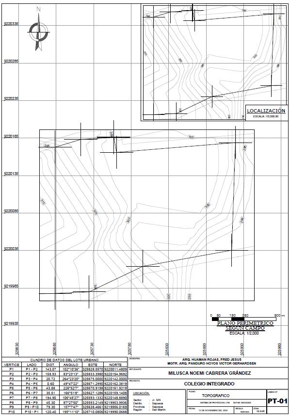 ● Plano de Ubicación, Topográfico con cortes topográficos y Perimétrico