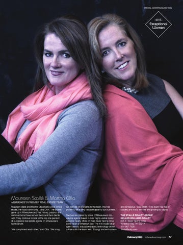 Maureen Stallé & Martha Olla Milwaukee’s Premier Real Estate Team Maureen Stallé and Martha Olla share a love of real estate, the local community…and DNA. The sisters grew up in Milwaukee and that history, passion and common bond have served them and their clients well. They continue to rank in the top one percent of successful real estate agents on Milwaukee’s North Shore. “We compliment each other,” said Olla. “We bring