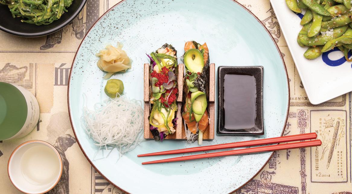“We use the freshest seafood ingredients to create many layers of textures and flavors in this taco sushi. It has the velvety texture of fresh fish, the crisp crunch of nori, and finishes with a pop from the ikura and tobiko roe. It’s a fun food to eat and another way to enjoy sushi.”