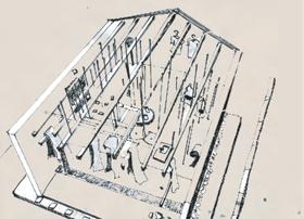 京éœã®é·å±ã®äžè§ã®æ§æå³ã®äœ ç»ããã®é·å±ã®çŽïŒç³ã»ã©ã®åºã ã§å²ãŸããéæ¿ã®ã¹ããŒã¹ã¯ãé· å±ã®æšªæºãæã«æ±ãæ¢ãåãæ¢ã ãã¹ããŒã¹ãšãªã£ãŠãããéæ¿ã® äžãæãæ¢ã貫ããïŒæ¬ã®æ±ã§å² ãæ§åãã²ãšç®ã§åãããããèŠ ããæ§å³ã®ãšãæ¹ãæ€èšãããŸãã é·å±ã§ããããšããã屿 ¹ã®æ¢ã é£å°ãšå