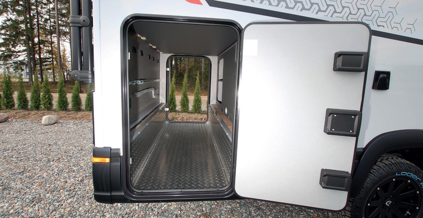 Plåtisen är kompakt, men ändå tillräckligt stor för att rymma tävlingscyklar och annan utrustning. Ibland följer Patriks två barn med och då kommer den nedfällbara taksängen väl till pass.