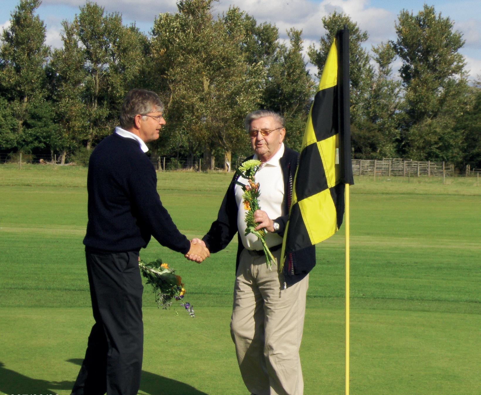När klubben arrangerar tävlingar är Klas och Lars självskrivna som funktionärer. Ofta som starters: – Vi skickar iväg dem när det är dags. Det har vi gjort så länge klubben har arrangerat tävlingar. Vi går också ut och lagar fairway när det behövs samt samlar bollar på vår driving range. Kan man hjälpa till så ska man!