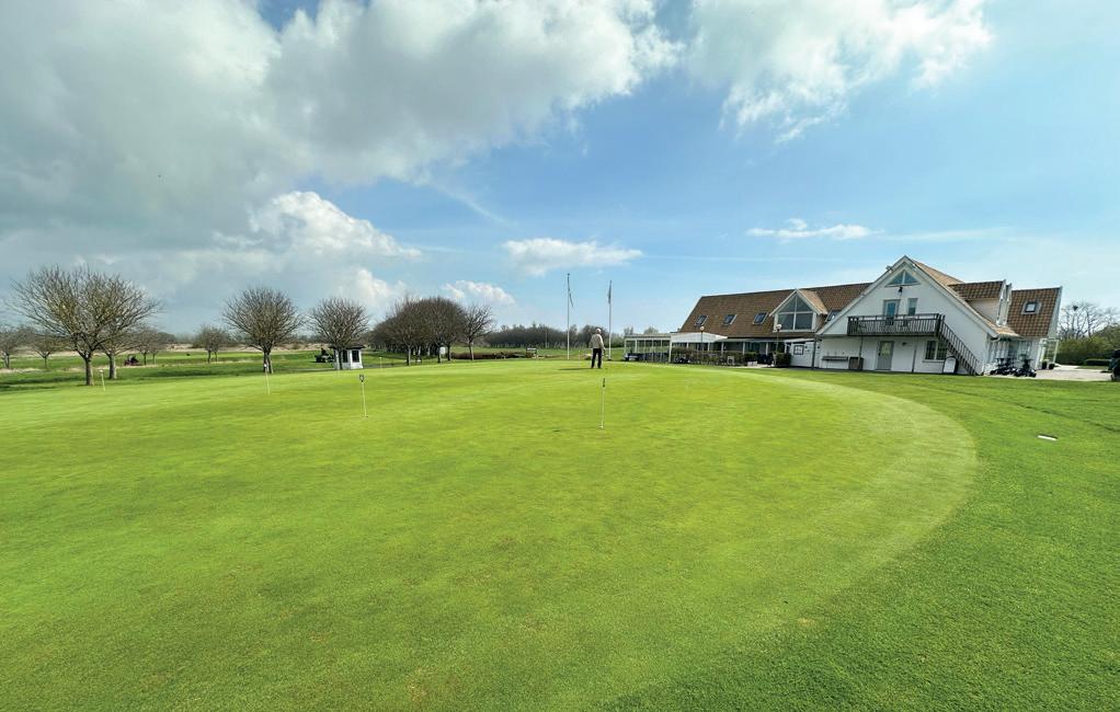 Puttinggreen, stor och ondulerad, finns vid ettans tee strax utanför klubbhuset.