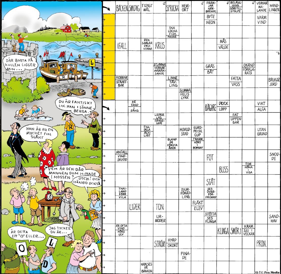 Lös krysset genom ledtrådarna och kom fram till vilket ord som gömmer sig i den gula lodräta raden.