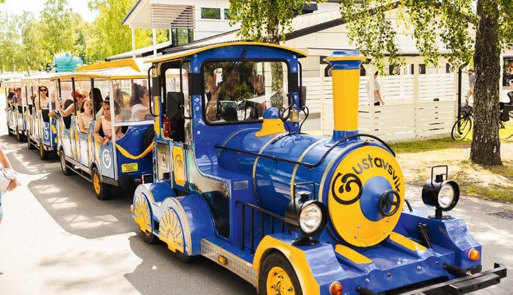 Här finns den 628 meter långa Långbryggan ut i sjön, där allmänhet en köpt sig egna bryggplankor med ingraverat namn.