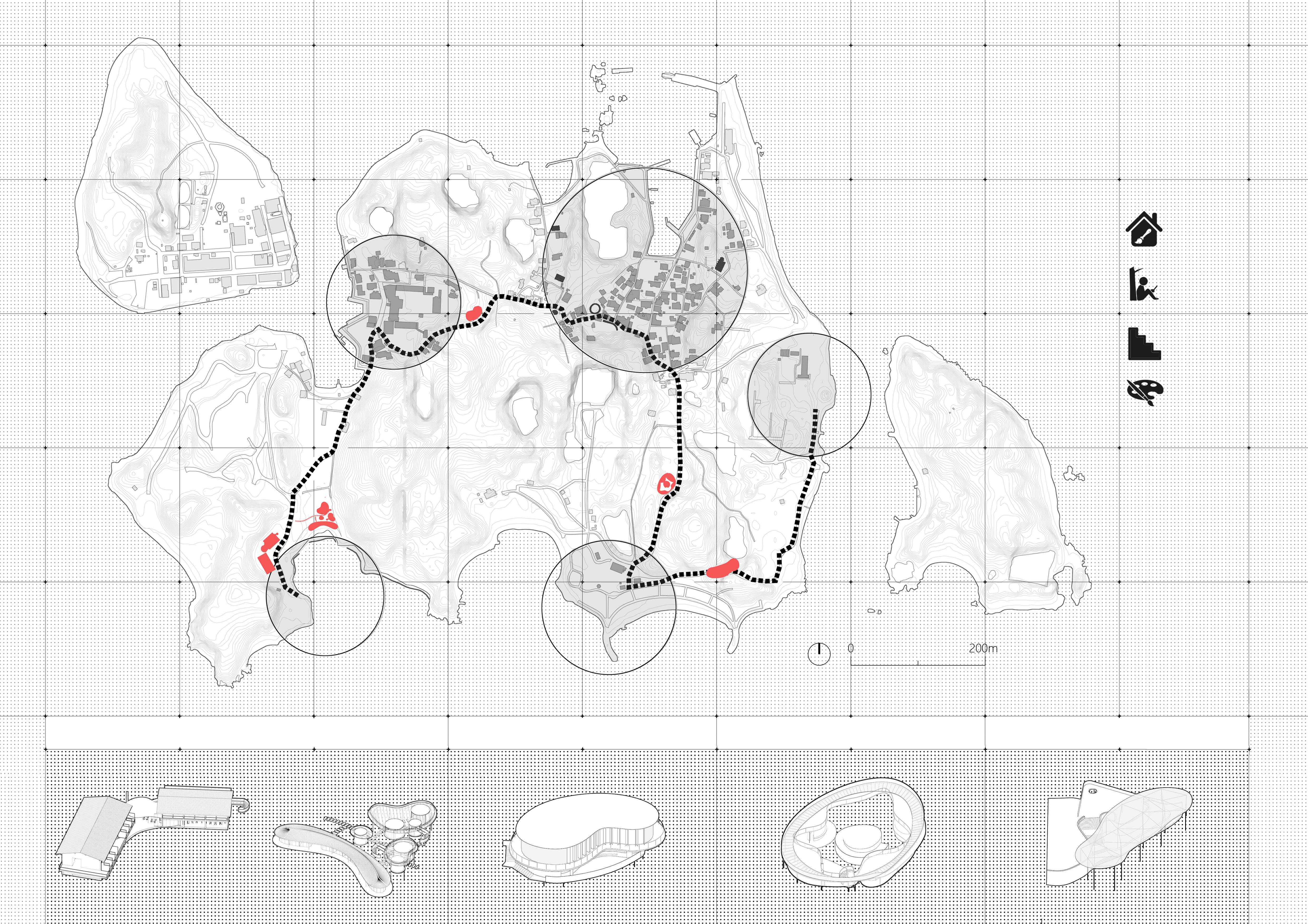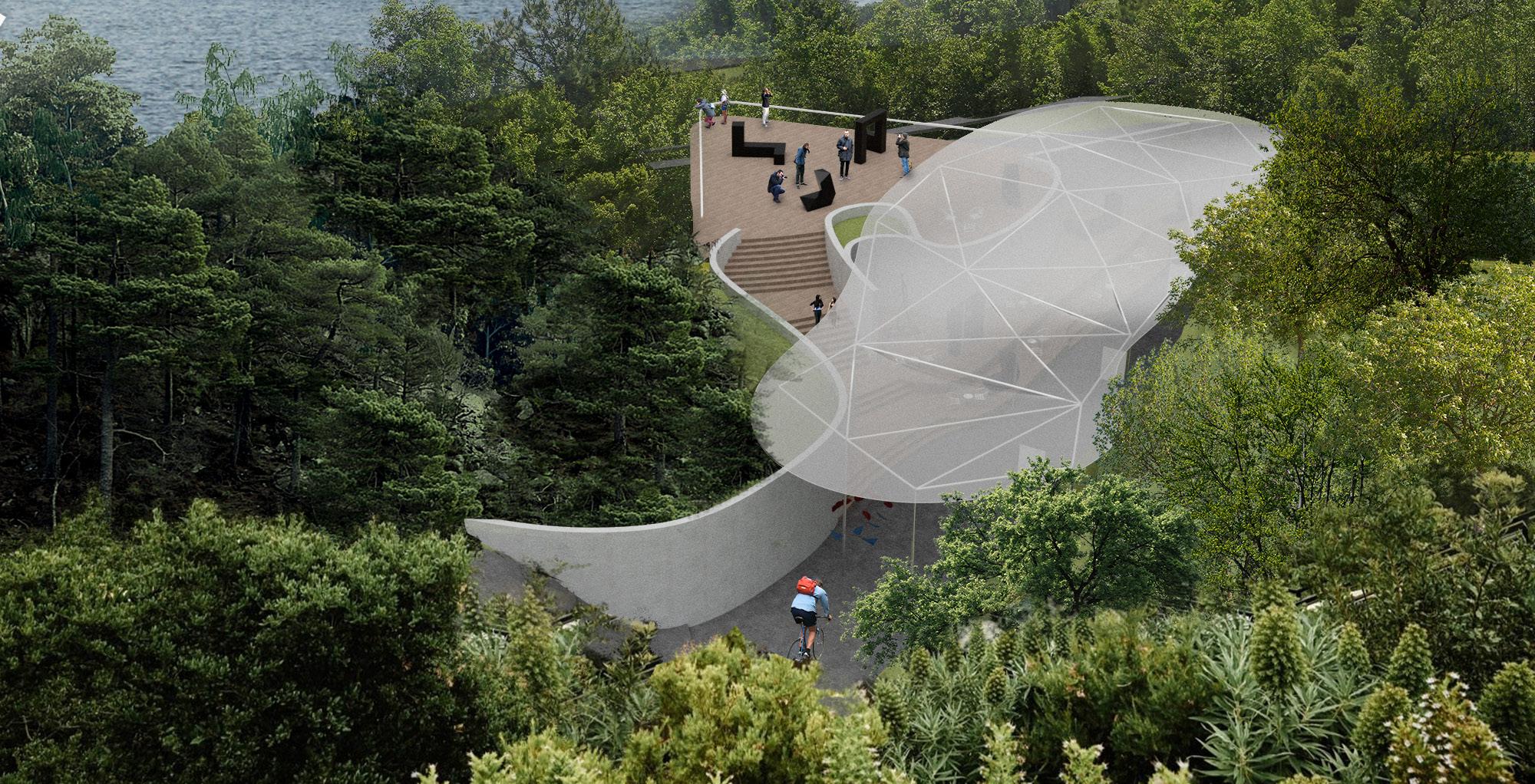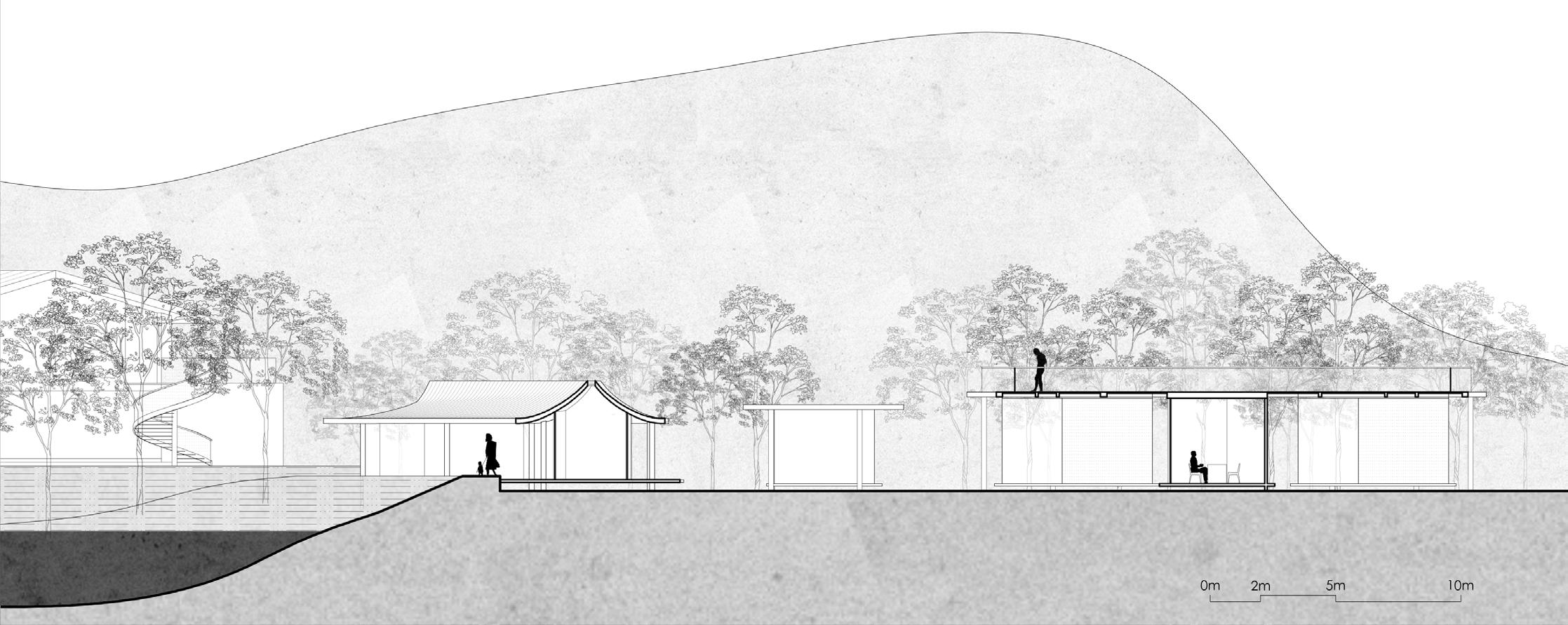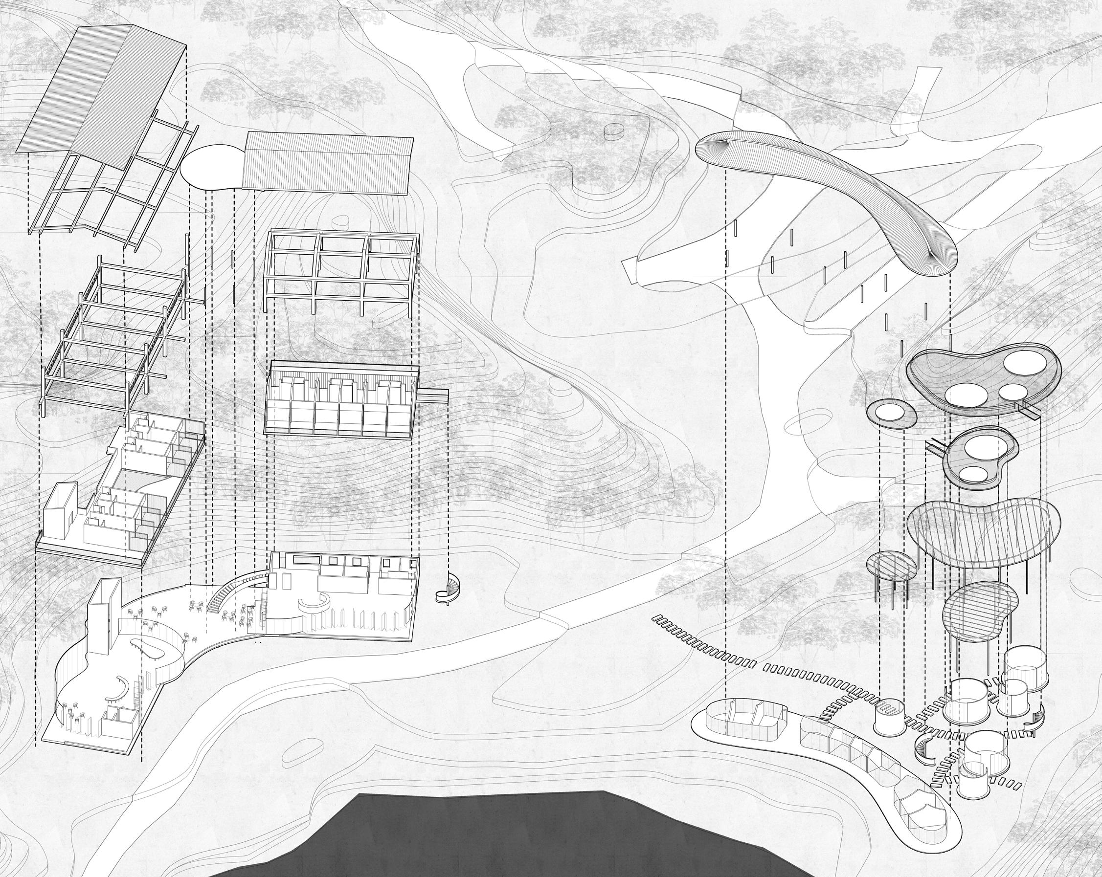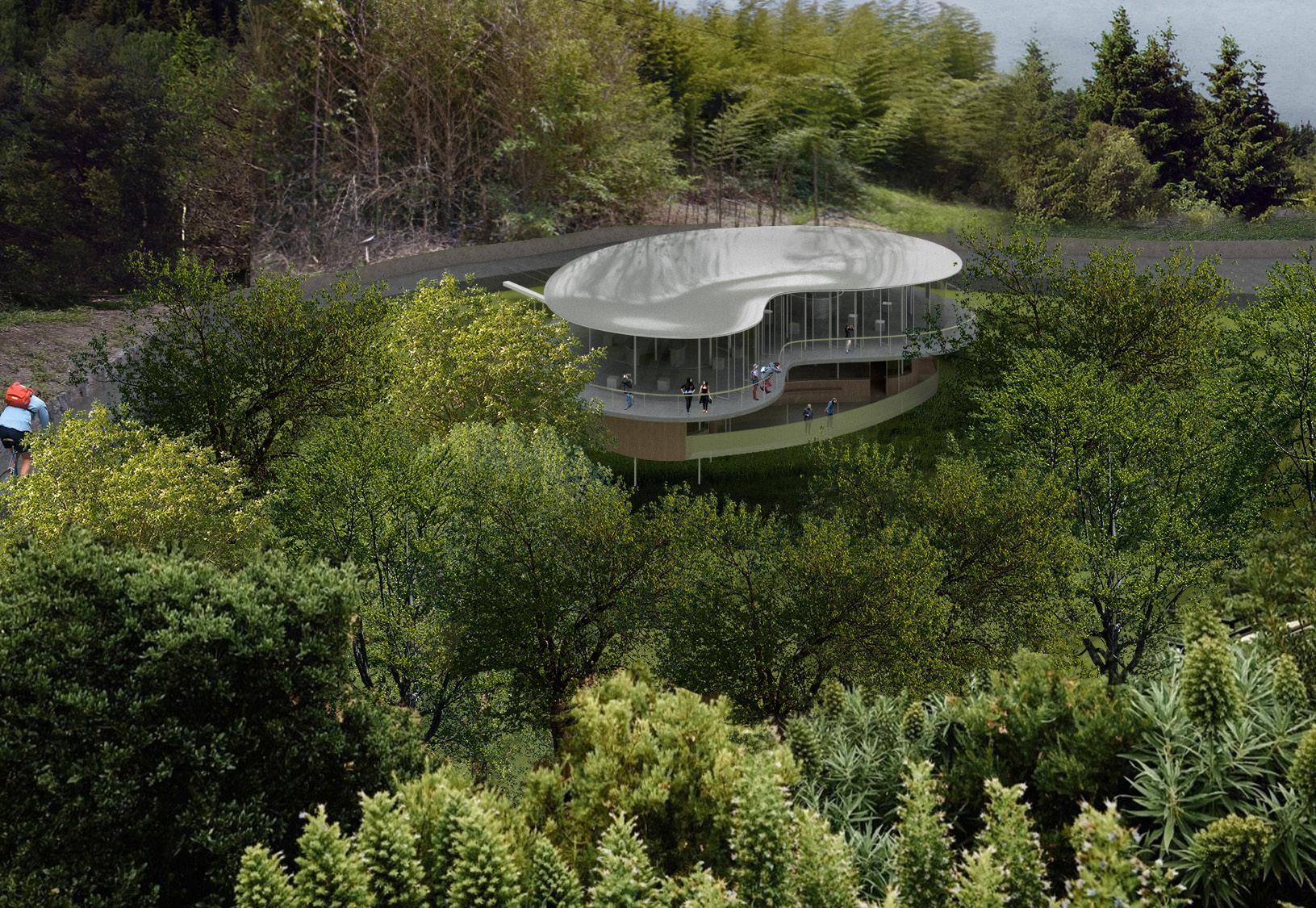 1. reshaped it right according to the contour lines to better fit into the landscape. people can access to it through a narrow brige hidden in the trees.