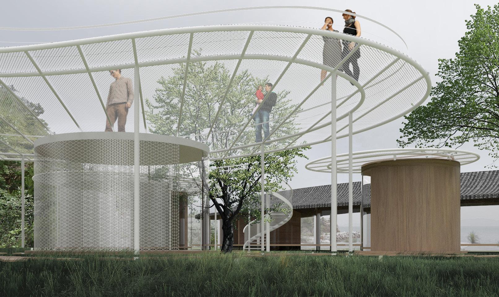 4. We adopt the same material which is the perforated metal mesh for the platform, adopt a more homogenous structural strategy, containing similar logic to that of other projects.