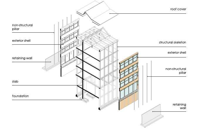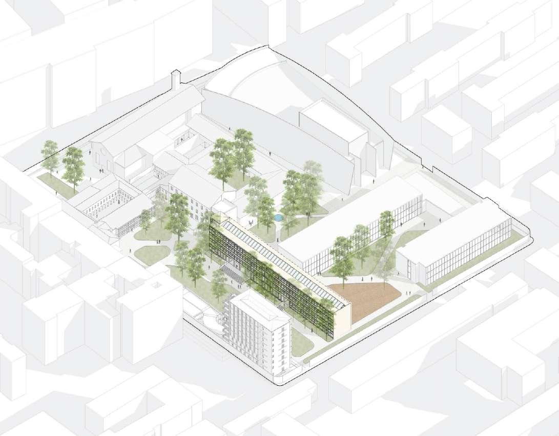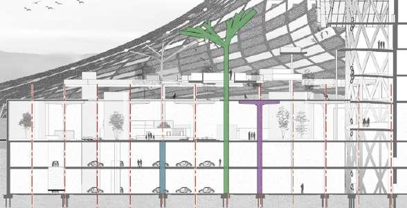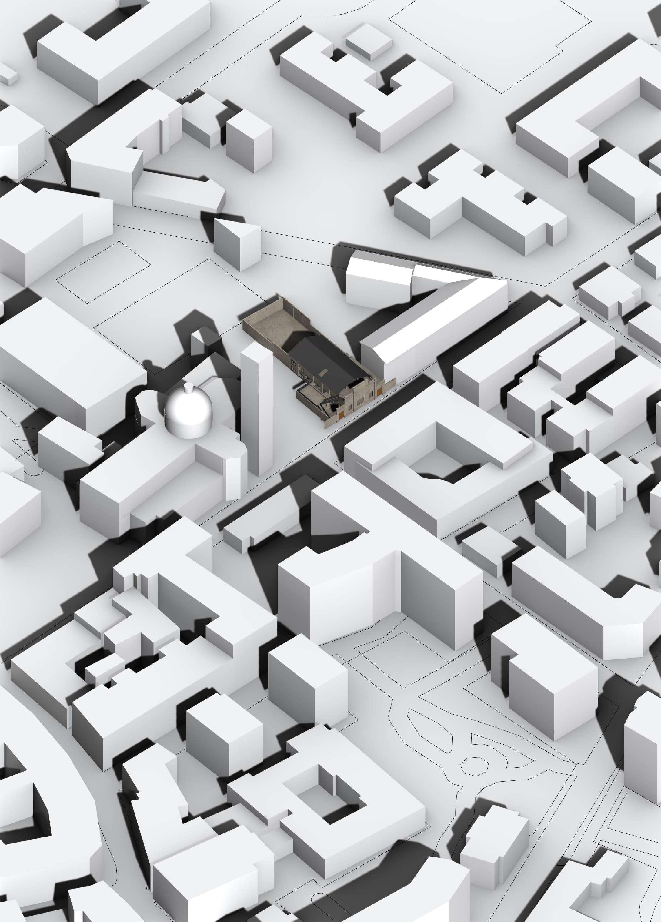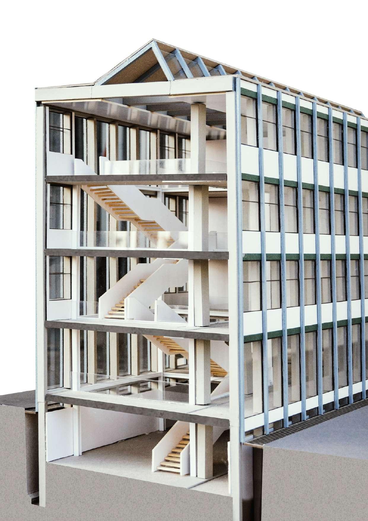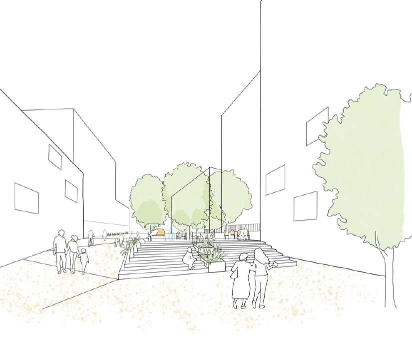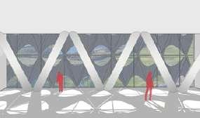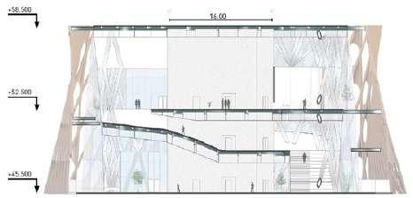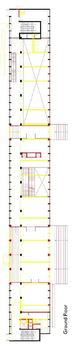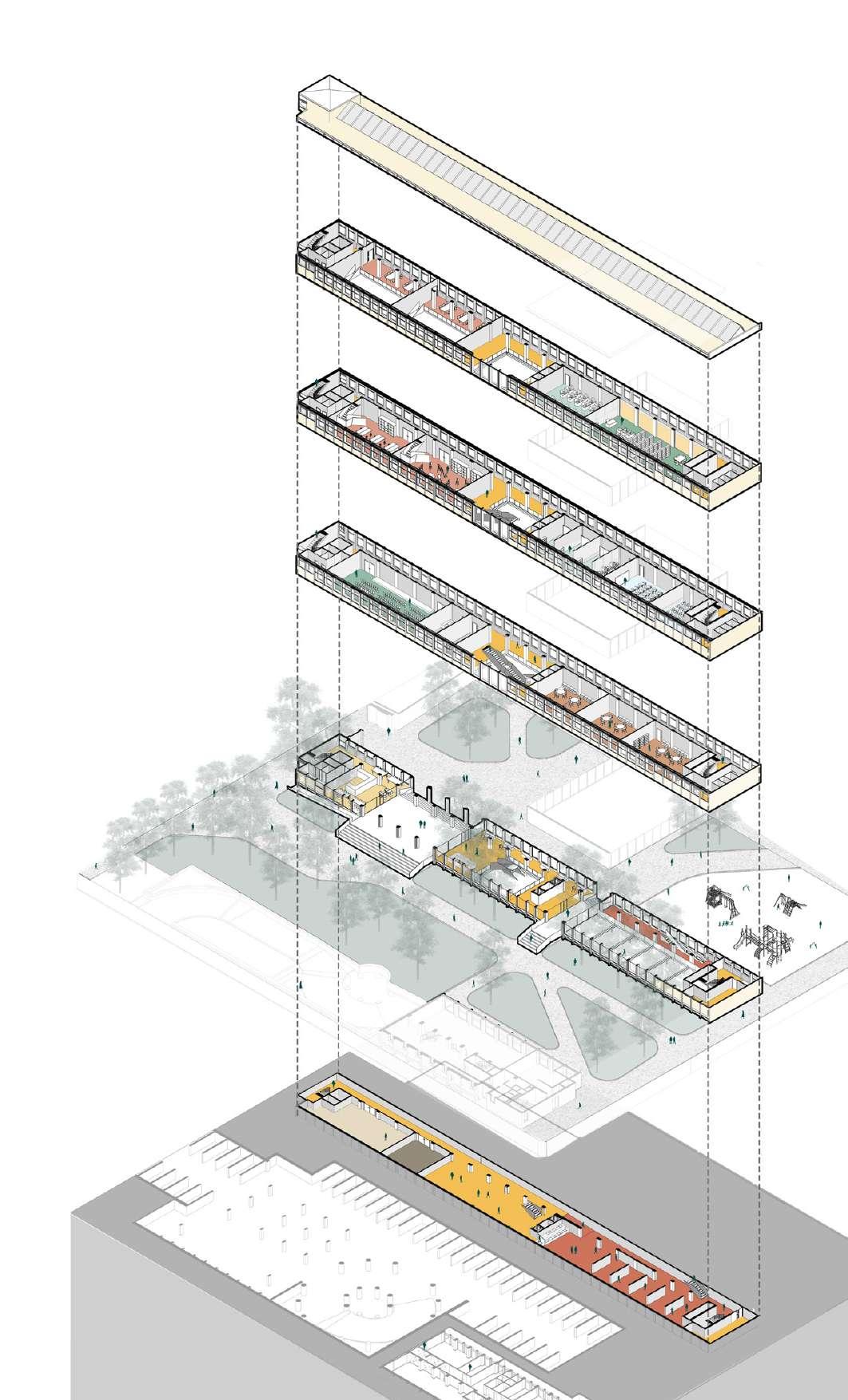A new set of stairs is merged in the middle of the building to make the inner circulation more effective. A transition is created within the building between the west-east sides of the complex to improve public use and circulation in the site. In the end, we defined new passages and entrances to the building with help of the landscape. The main layout of the structure is preserved and is just going to be adjusted according to proposed spaces