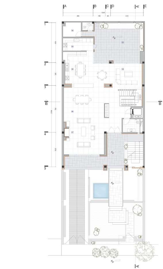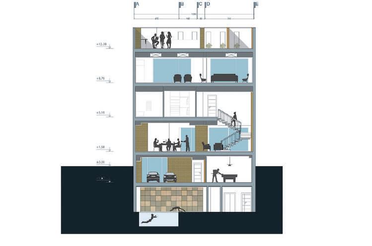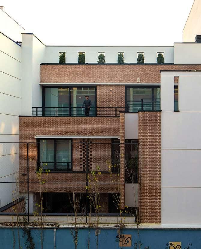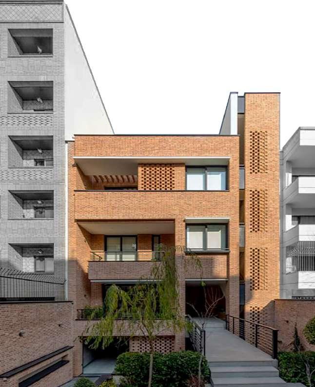 The project’s main advantage was the client’s clear vision for a simple, warm brick house with defined spaces, located in an authentic area of Tehran. Developed over five floors, including two basements, it features a duplex unit, a separate unit, a large private northern courtyard, a swimming pool, a rooftop for gatherings, a library, workrooms, a play area, and an internal elevator. A sunken garden in the southern courtyard provides light to the basements. The northern courtyard connects with key living areas, and setbacks create openness. The rooftop combines utility and design for a social space.
