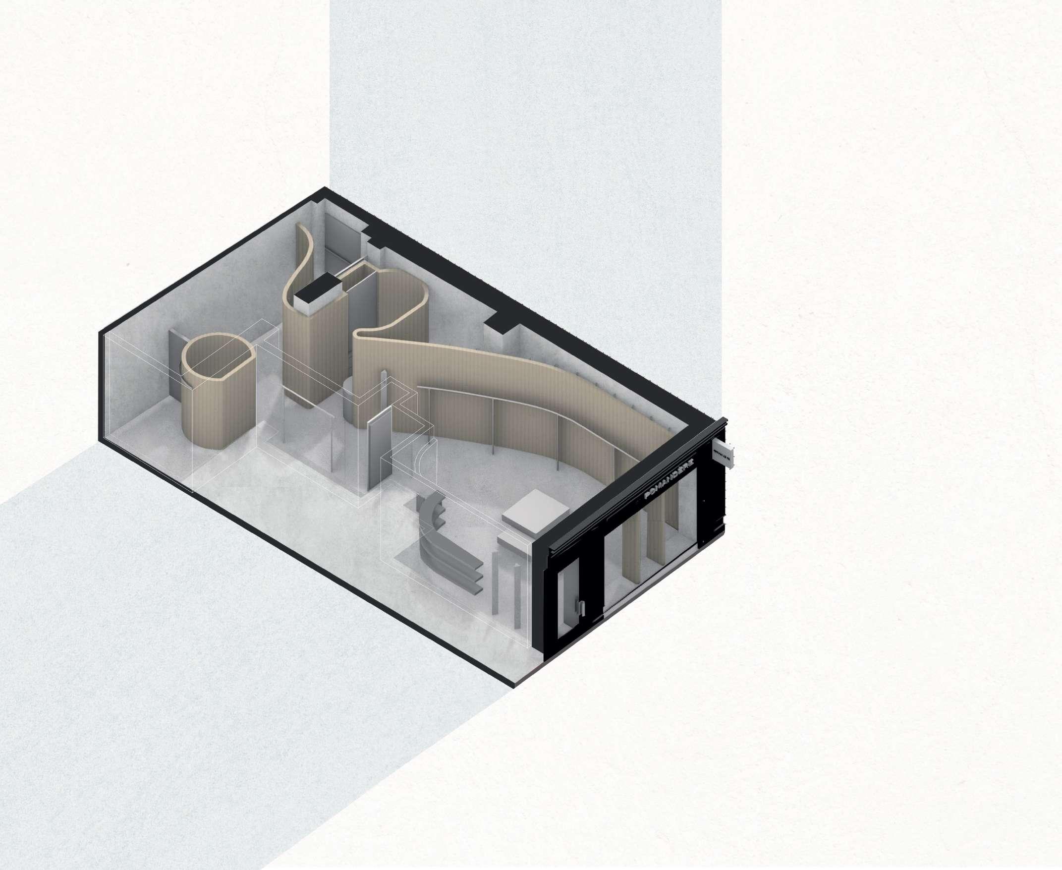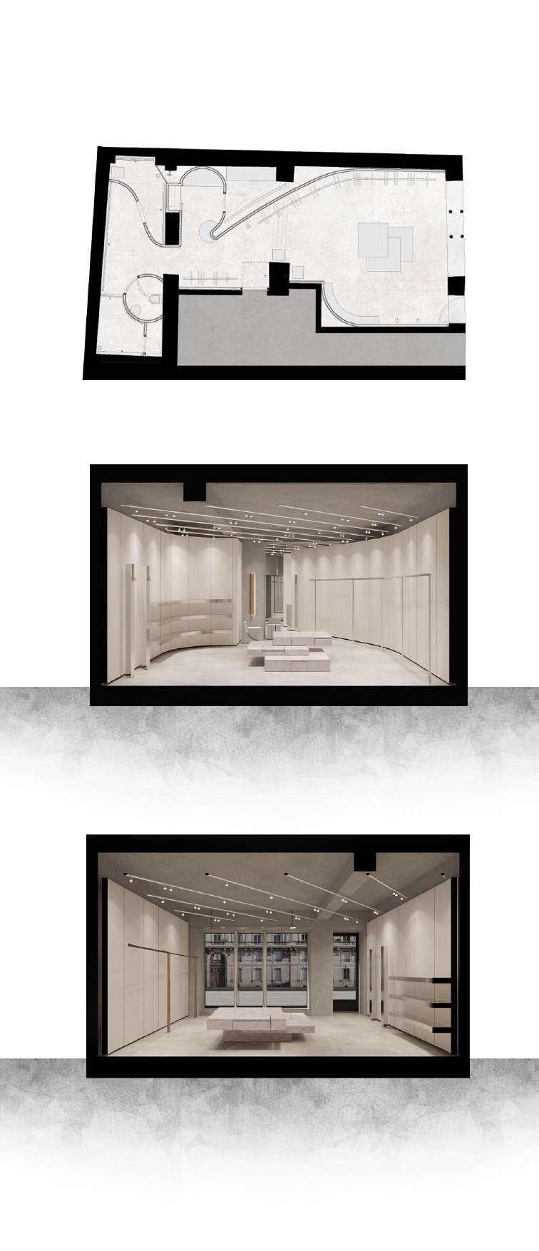 Our task was to faithfully translate the client’s vision into a captivating and functional space. We started with a concrete floor to establish a modern and clean foundation. This choice provides durability and a minimalist aesthetic, perfectly aligning with the brand’s identity. To contrast the floor’s sleekness, we opted for a softly flocked ceiling, adding a layer of warmth and inviting texture. The aluminum lighting arrangement was carefully selected not only for its practical illumination but also for its contemporary elegance. Throughout the store, we incorporated beige hues, reminiscent of the brand’s signature pieces, to evoke a sense of understated elegance. Every element, from the floor to the ceiling and the lighting, was designed with meticulous attention to detail to ensure the space is both beautiful and inviting. Our goal was to create an environment where customers feel comfortable and inspired, a true reflection of the brand’s ethos.