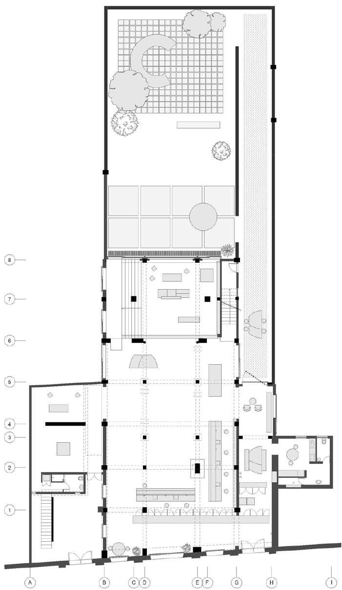 The entire design aimed to revive the theater’s former glory, buried under numerous layers of construction over time. Simplifying the space enhances its functionality as a gallery, where each piece of furniture is a showcase. The building’s crowning feature is a stunning garden, emphasized by opening all rear-facing facades to frame the greenery as a masterpiece