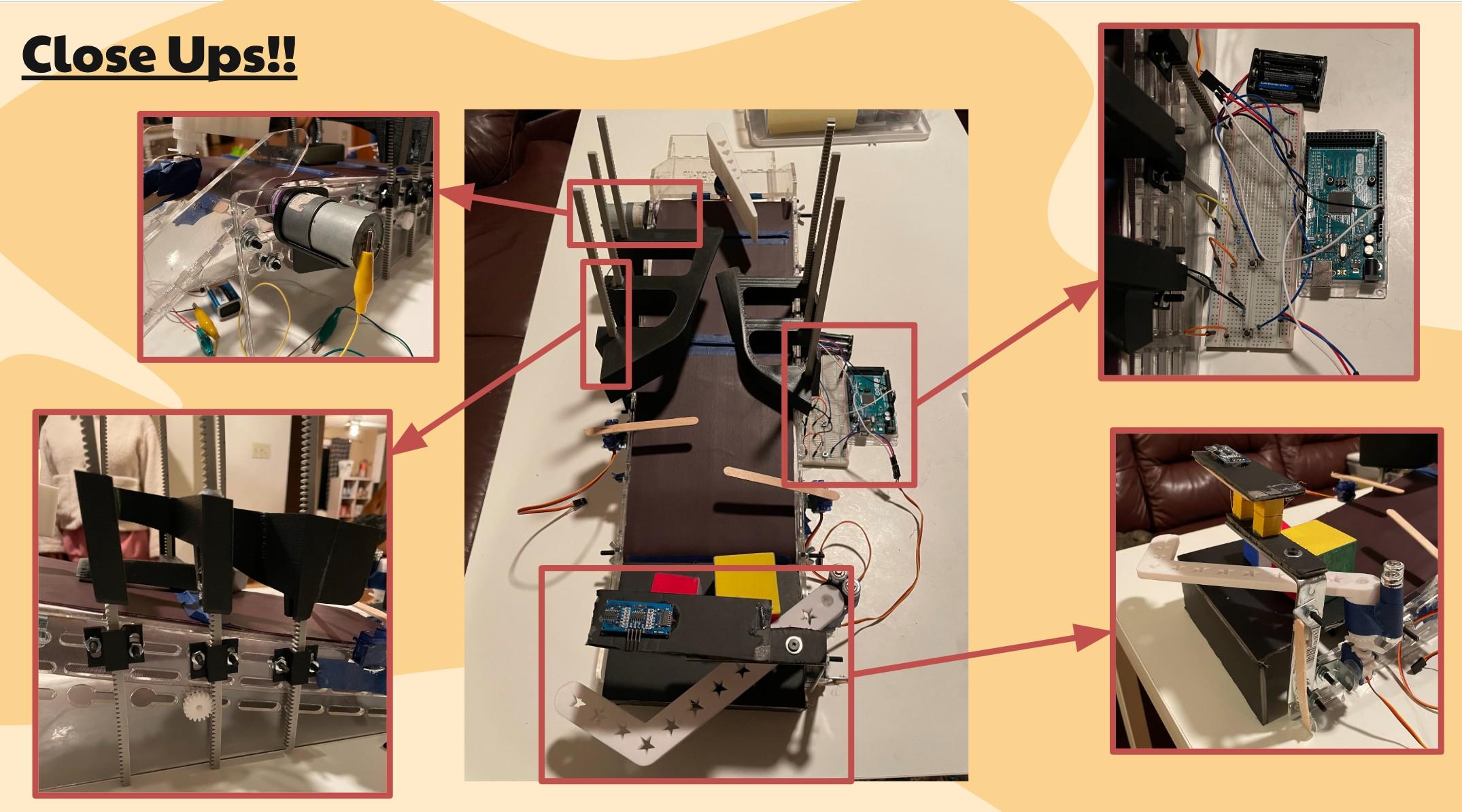 Built and verified a conveyer belt-based pick and place mechanism to move multiple sizes/shapes of objects from a drop-off area to one of two storage areas using Arduinos, servo motors, linear actuators and other mechanical components.