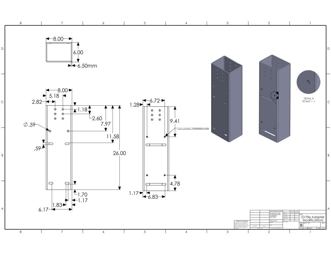 Completed three different types of pile adaptor part drawings with suggested improvements from the current installed designs. Collaborated with the mechanical superintendent to engineer modifications. Drawings to be used for next manufacturing round.