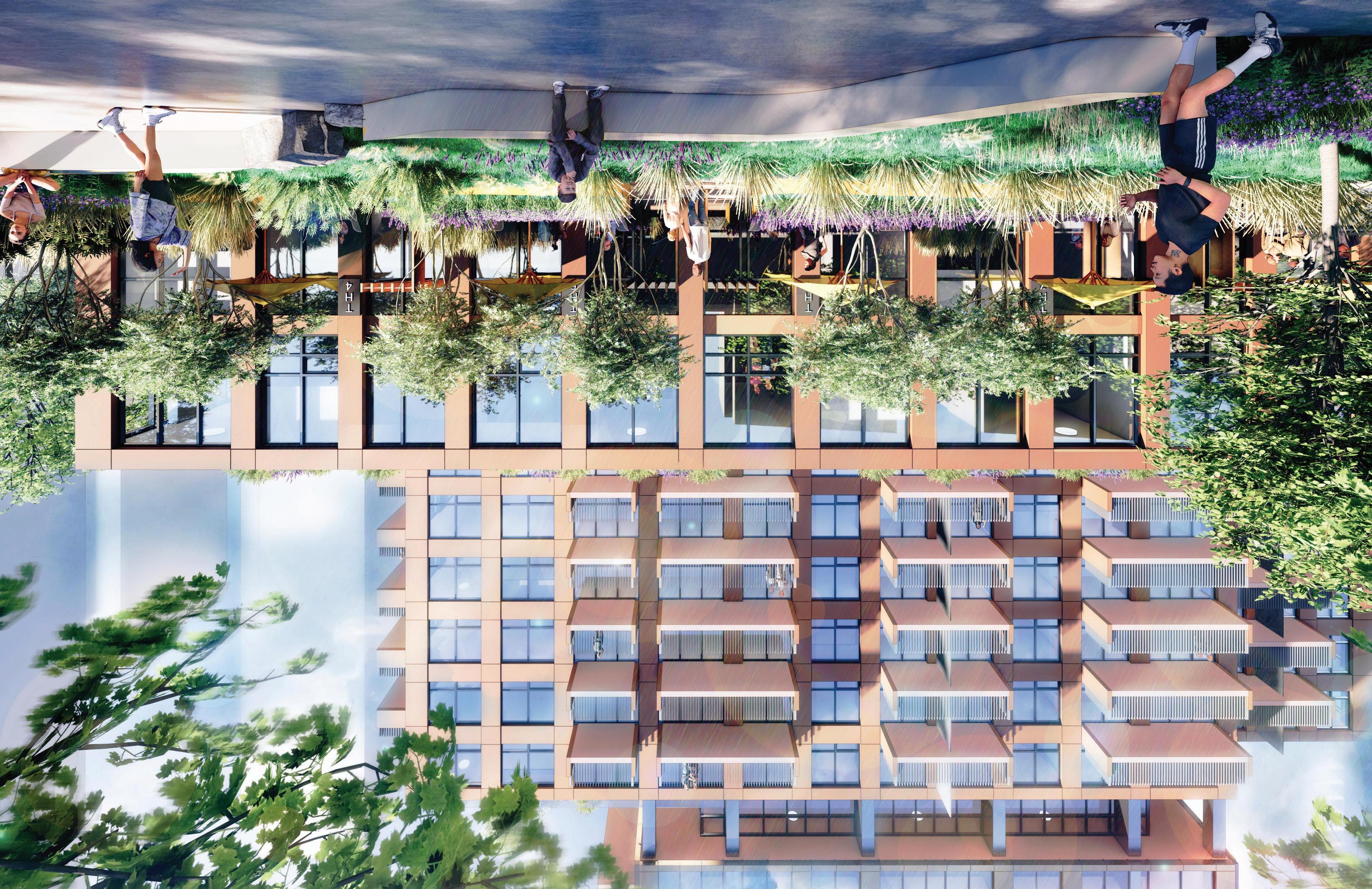 Amenity activated glazed facade to create connection between indoor/outdoor