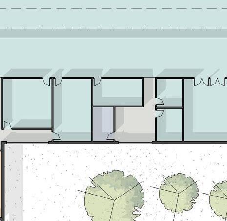 Enhancing porosity to facilitate the activation of public spaces Retail emphasized through commercial scale curtainwall and signage