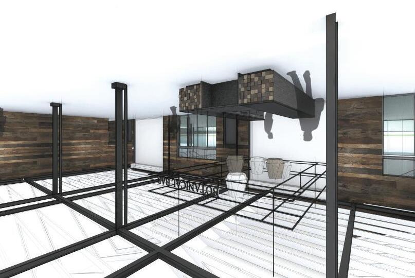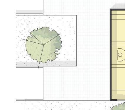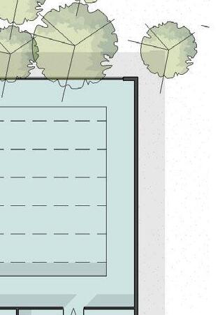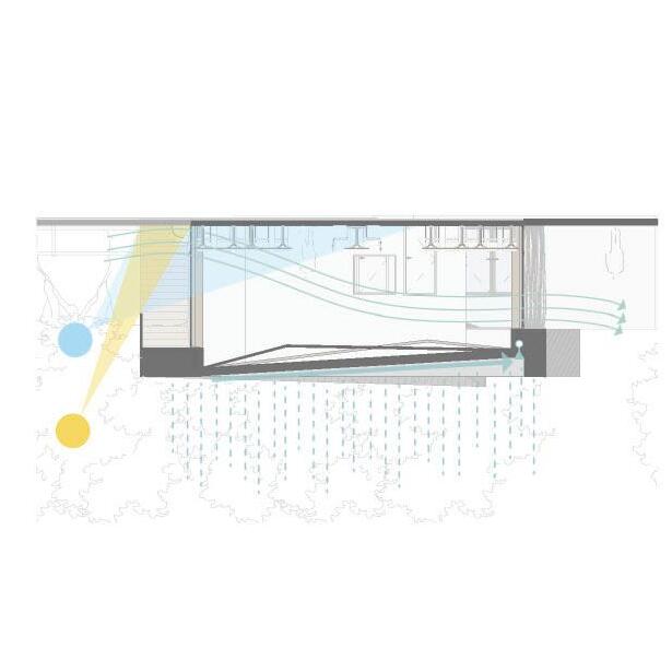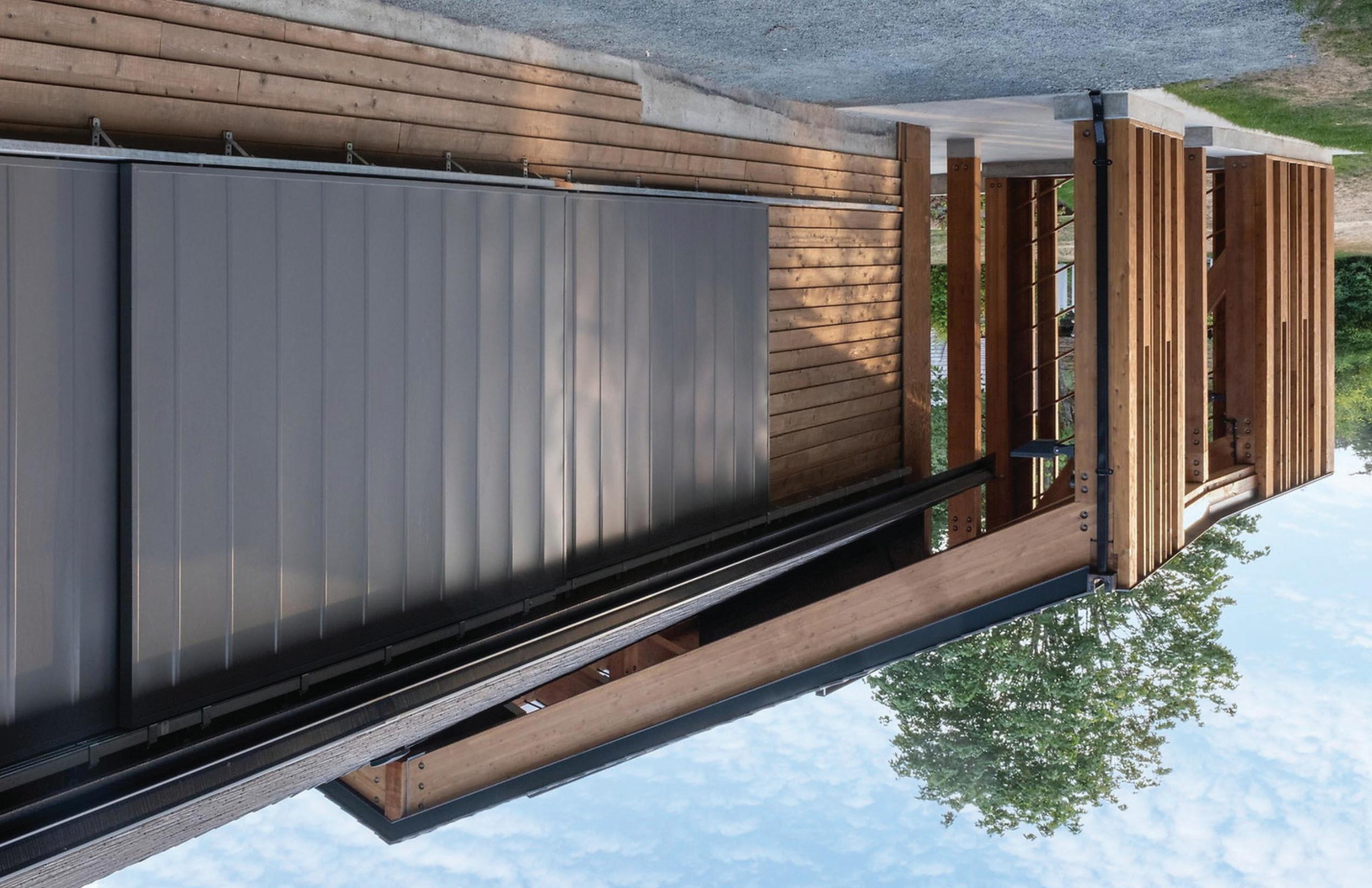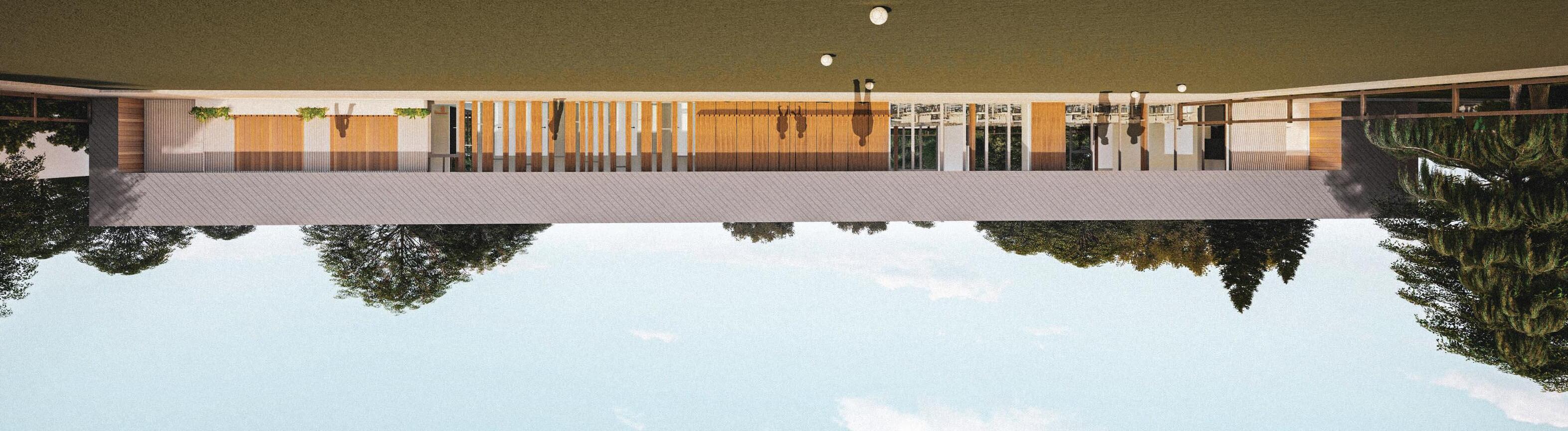 The elevations are further articulated creating visual interest and a connection between the roof element and ground as well as between adjacent functions.