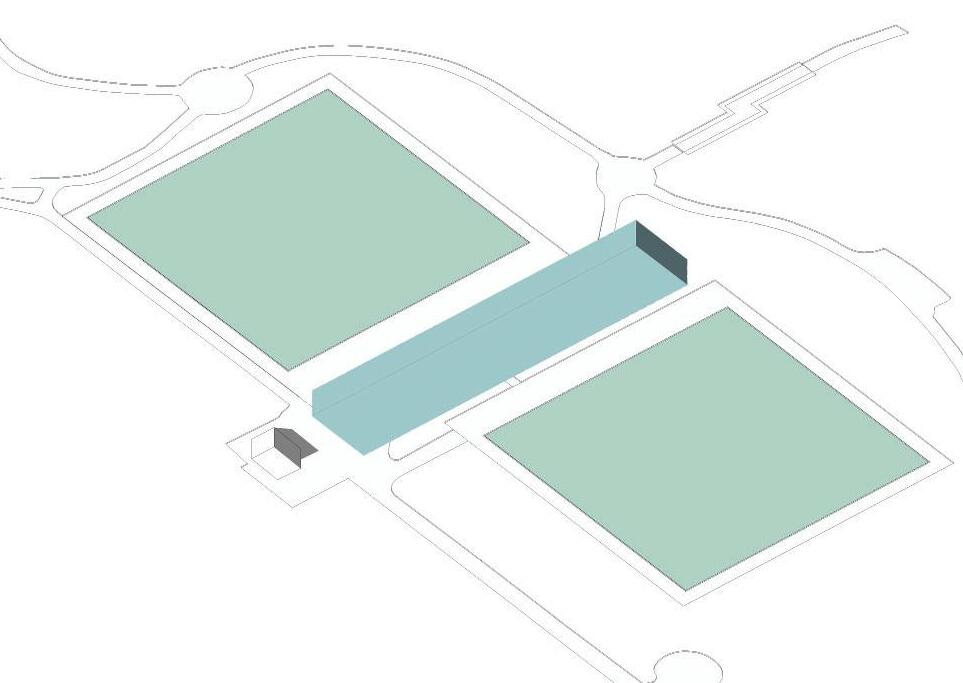 The project constraints require a bias to the south green with a minimum 17’ clear width between the north green and the building. The numerous pedestrian paths that are adjacent to the building make each elevation visible to passers-by. Highrise buildings in proximity make the roof a visible fifth elevation for residents of the area.