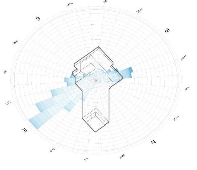 Reducing the impact of the prevailing winds on the east facade