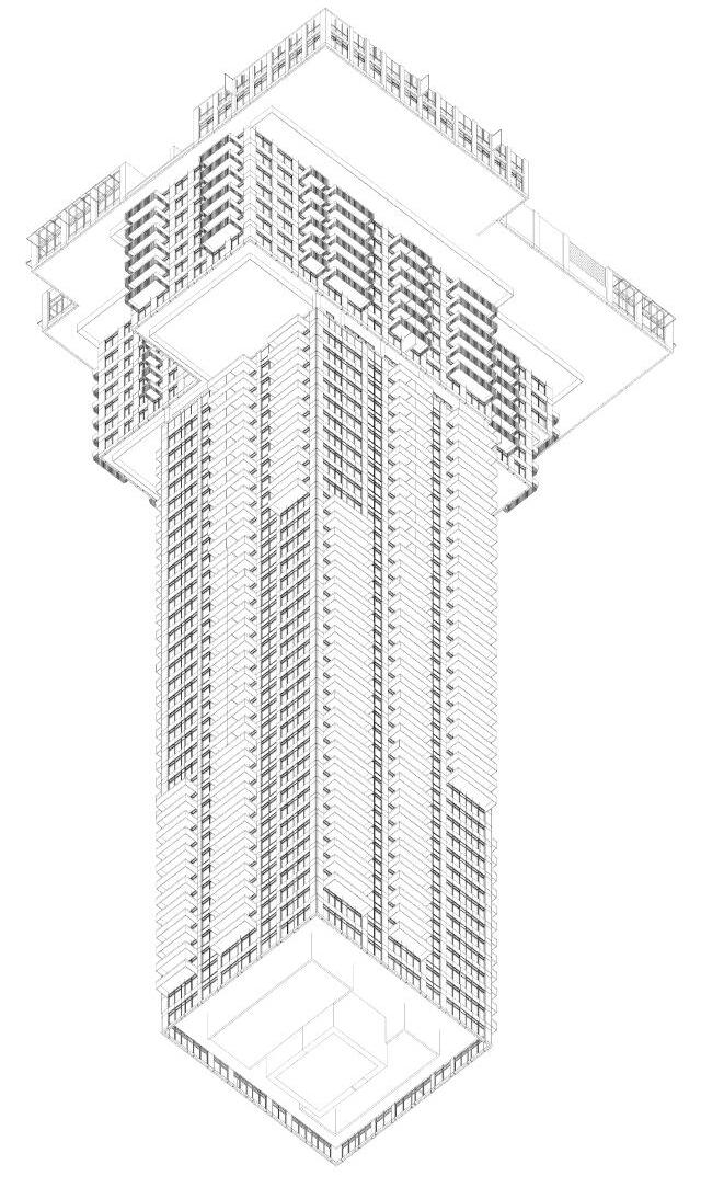 The tower’s tall, slim proportions on all sides is created by utlizing 25 m by 28 m floor plates that maximize structural eff iciency and unit livability.