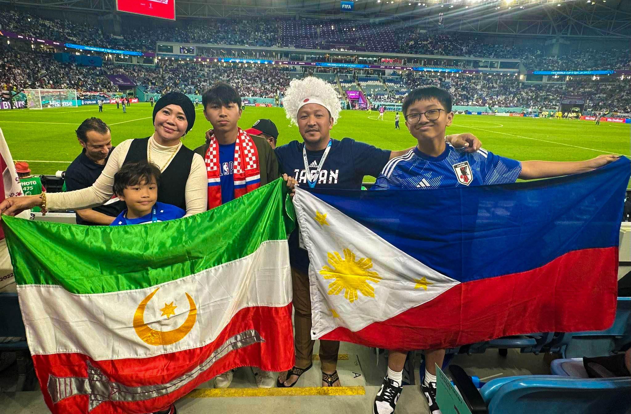 BANGSAMORO IDENTITY. The Moro engineer James Mlok and members of his family displayed last week in Qatar, as they watched the World Football Cup, the Bangsamoro banner and the Philippine Flag.