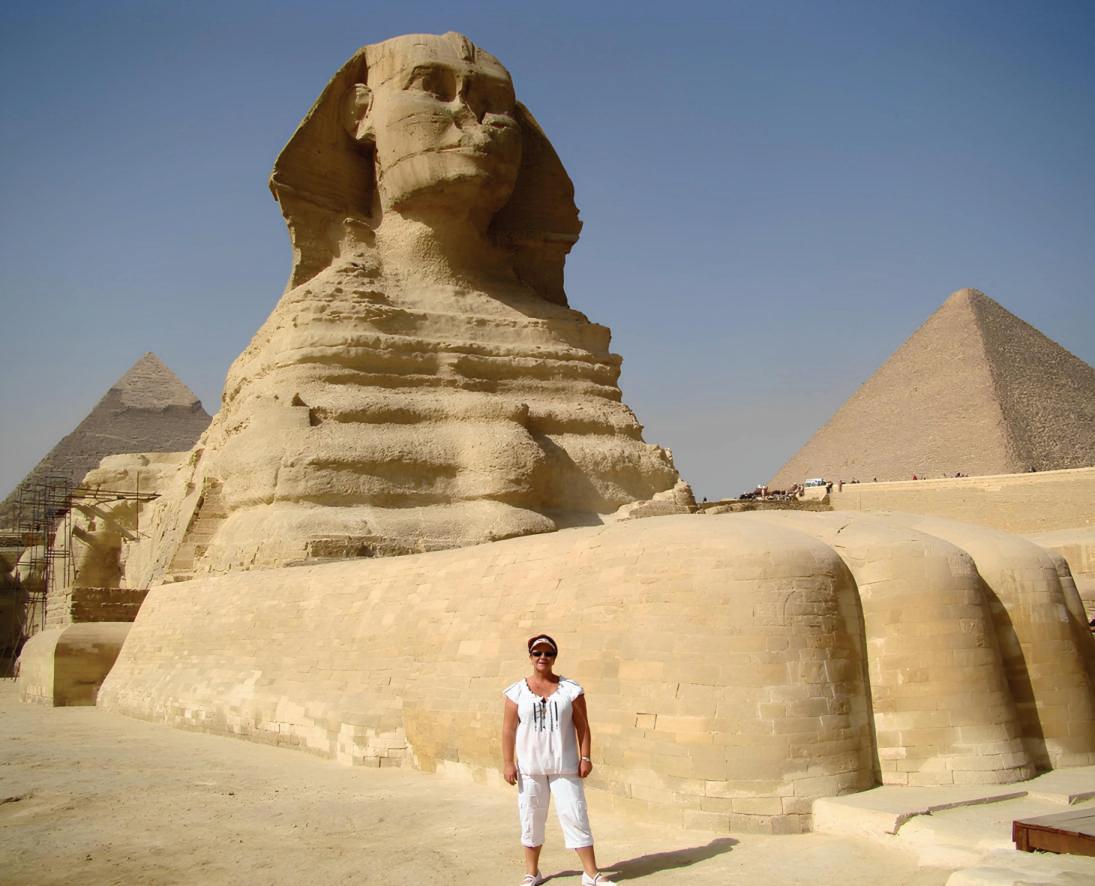 king's chamber, a sliver of light touched the floor and I moved onto the light shadow and closed my eyes... unexpectedly I found myself in the presence of the Lords of Karma, their stern, no nonsense energy quite alarming, whilst surrounded by tons of stone above and beneath my feet. Stammering I asked for release from a particular karmic debt, which I have been burdened with over many lifetimes, playing the same lesson over and over. I didn't expect their sanction, I expected rebuke on karmic debt... I sensed a hammer fall and, almost immediately, a lightness of being overtook my form and tears rolled down my face in the dark chamber and I knew it was done! The sense of freedom was so profound that the rocks above me may just as well have been polystyrene. And in that moment other travellers on the journey began to tone, with the Om chant, in the chamber... a sound so immaculate, so divine it will remain with me through eternity. In floods of tears, released and, relieved,,I made my way down the narrow chamber, to get to the Sphinx in time for a meditation at 11:11” Ed.