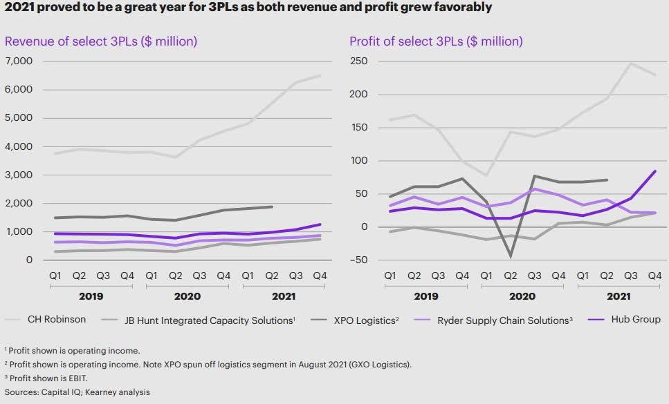 A quick look at the revenue and profit growth among 3PLs in 2021 demonstrates a significant increase (see illustration below). So what accounts for the accelerated growth among third-party logistics providers,
