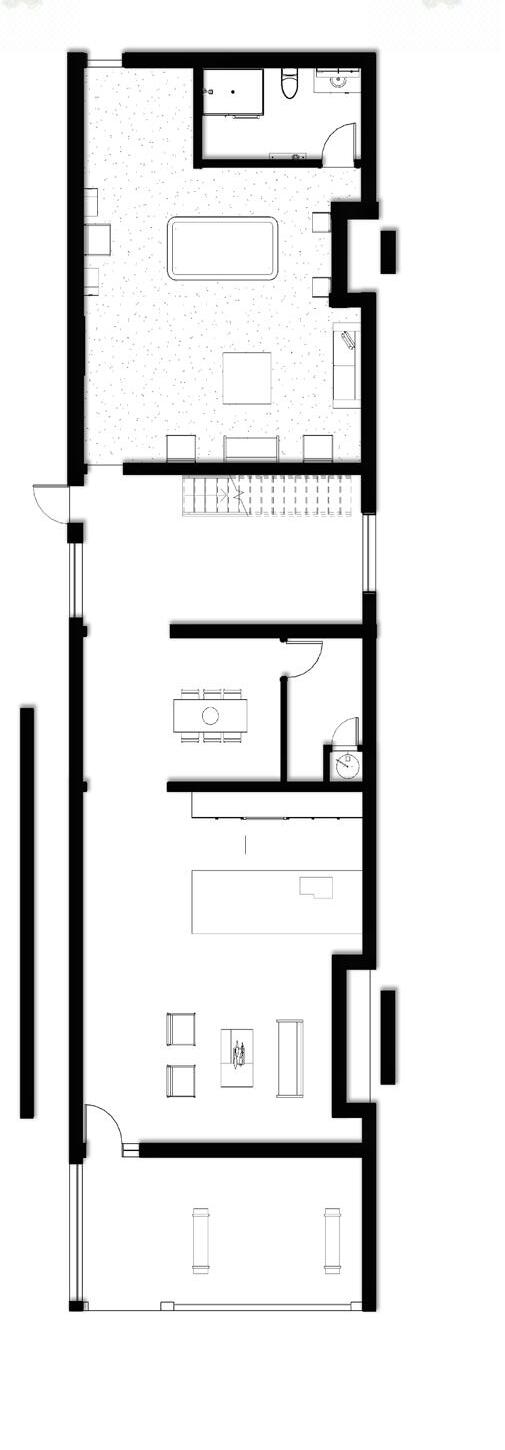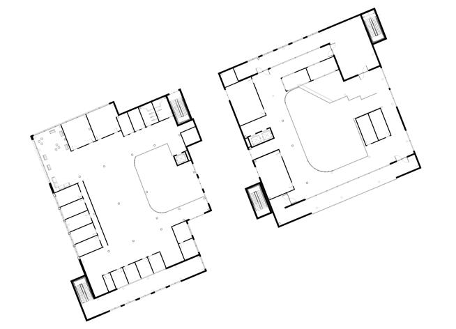 Precast concrete walls act as veils allowing for privacy and noise reduction in a Compact environment. 1 2 4 5 6 3 1 2 3 4