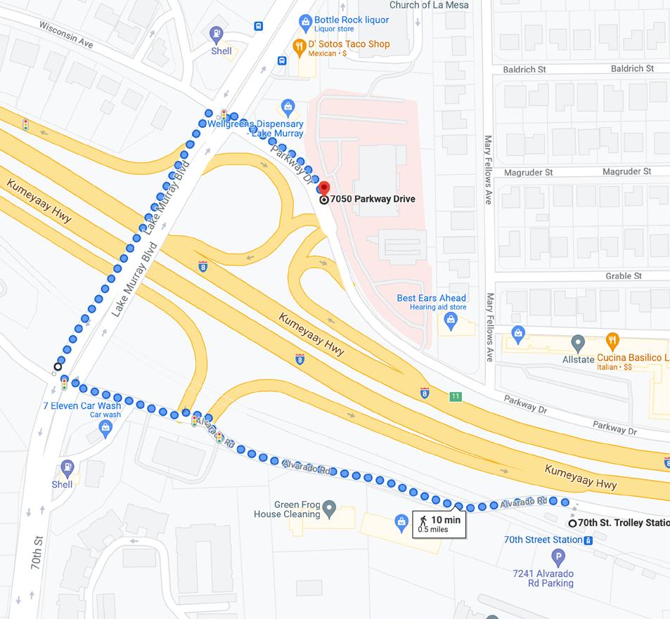 • Take the GREEN LINE to 70th St. Trolley Station (La Mesa).