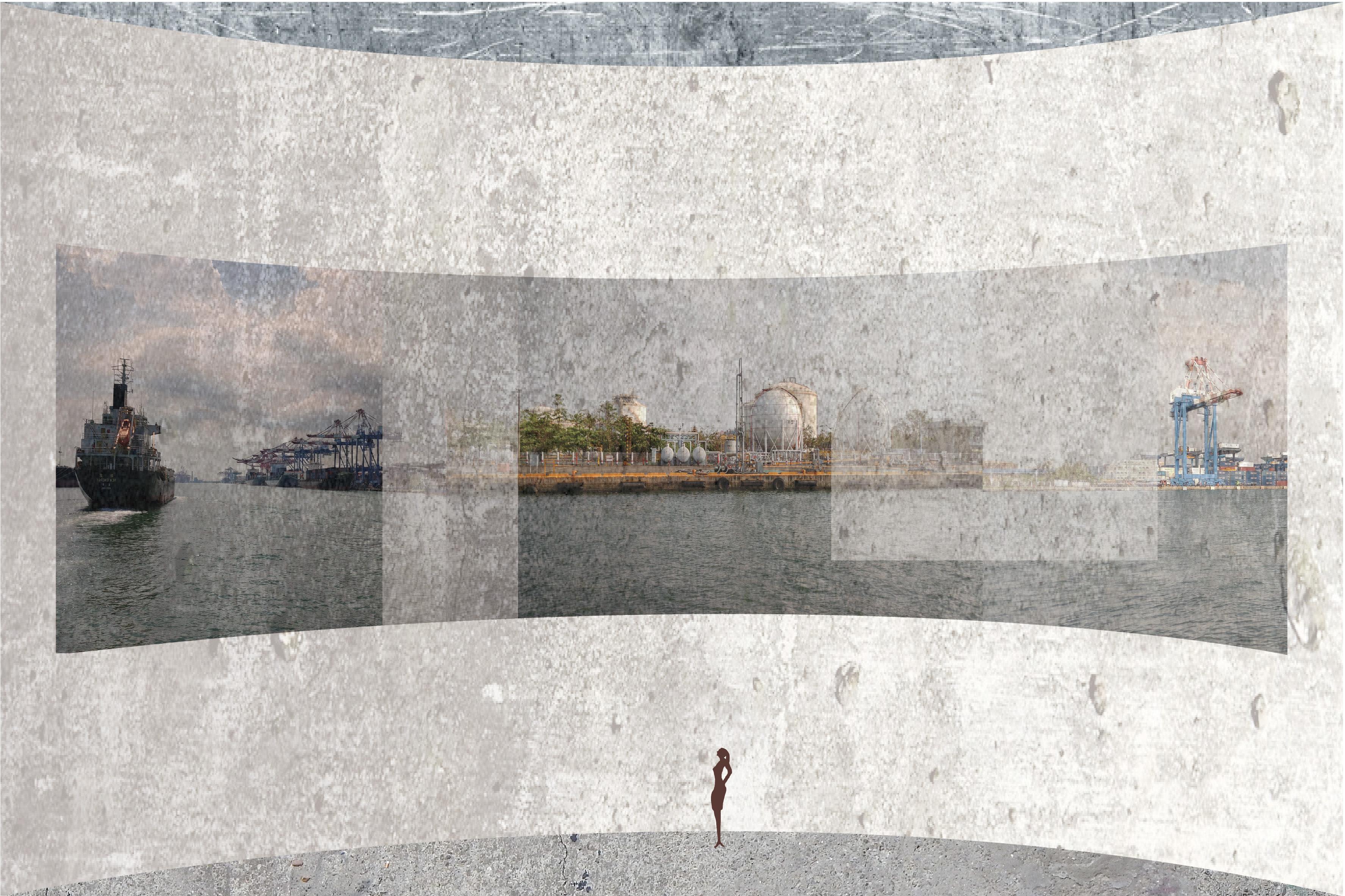 但長期工業佔據的影響,大量工廠群聚於此,周邊社區早已沒落,成為高雄港的邊角地帶。我藉由桶槽搬遷 為契機,讓人們的活動範圍擴散至水岸,不再被工業區的高聳圍牆所阻隔,並保留原本的油槽加以改造作為 美術館使用,在巨大工業尺度空間裡與藝術結合,定義了新時代的藝術場域。