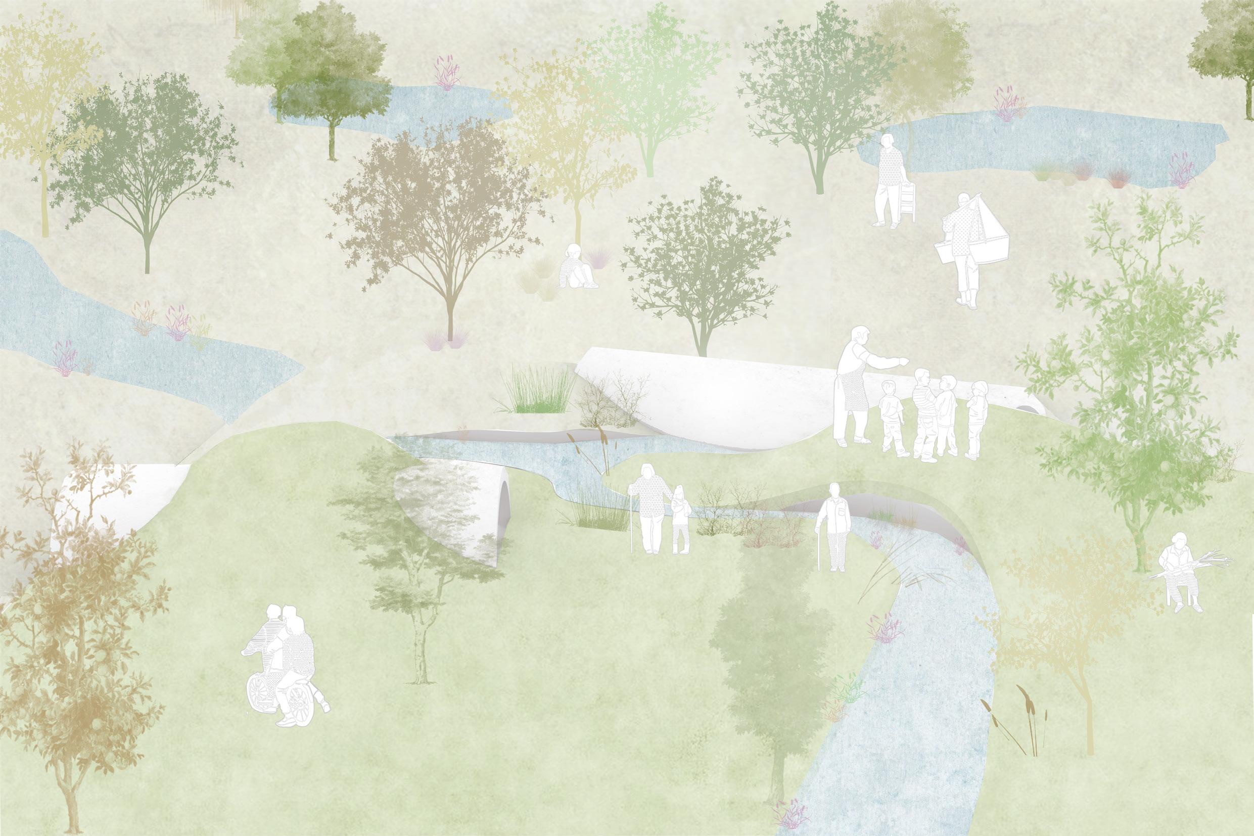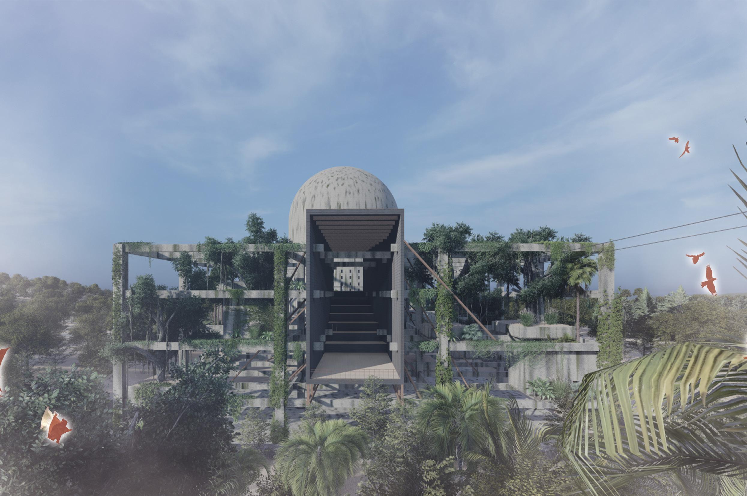 透過設計,人將會被限制於新建的空間中,動植物將會重新回到土地並滲入遺跡,人、自然與動物的定位將 會被轉換,並藉由遺構產生新的互動關係。