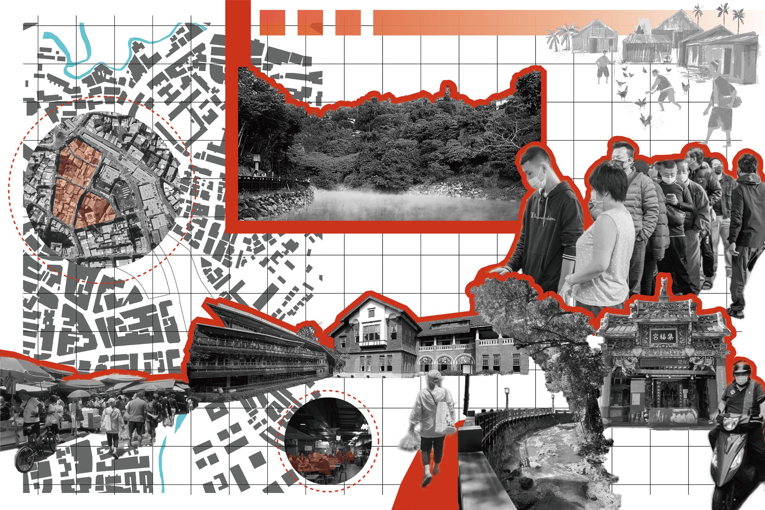 傳統市場往往是一個人與人交流、對話、買賣的場所,處處可見到人情味與新鮮的食材,那些此起彼落的叫 賣聲代表著一個地區的活力;區公所則是地區人們與政府溝通的地方,對於地方管理、地方發展有著重大影 響,市政府面對地方的第一線。現在的市場建築已經有了近50年的歷史,已不堪使用,並且對於一些舊有 的空間問題,藉由這次設計,從北投地區的歷史脈絡與地方紋理及以一個北投人來切入,能夠對市場與區公 所和北投這個地方有一個新的連結。
