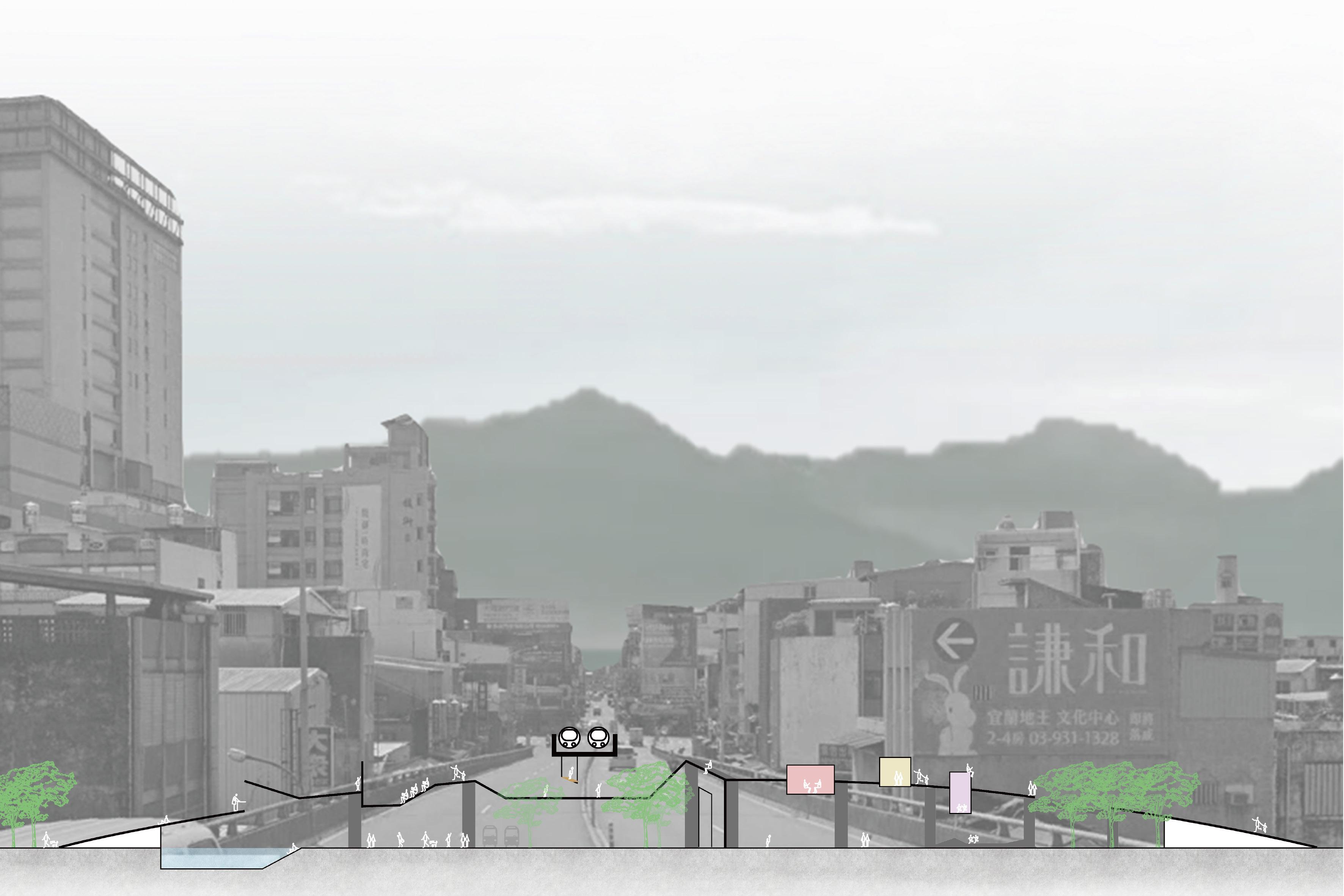 並利用原有橋墩柱結構的功能性,將基礎設施轉化為新城市空間,並結合歷史記憶與橋梁構造特質,提出一 套兼具文化價值與實用性的城市更新策略,探索「橋」在都市發展中的可能。