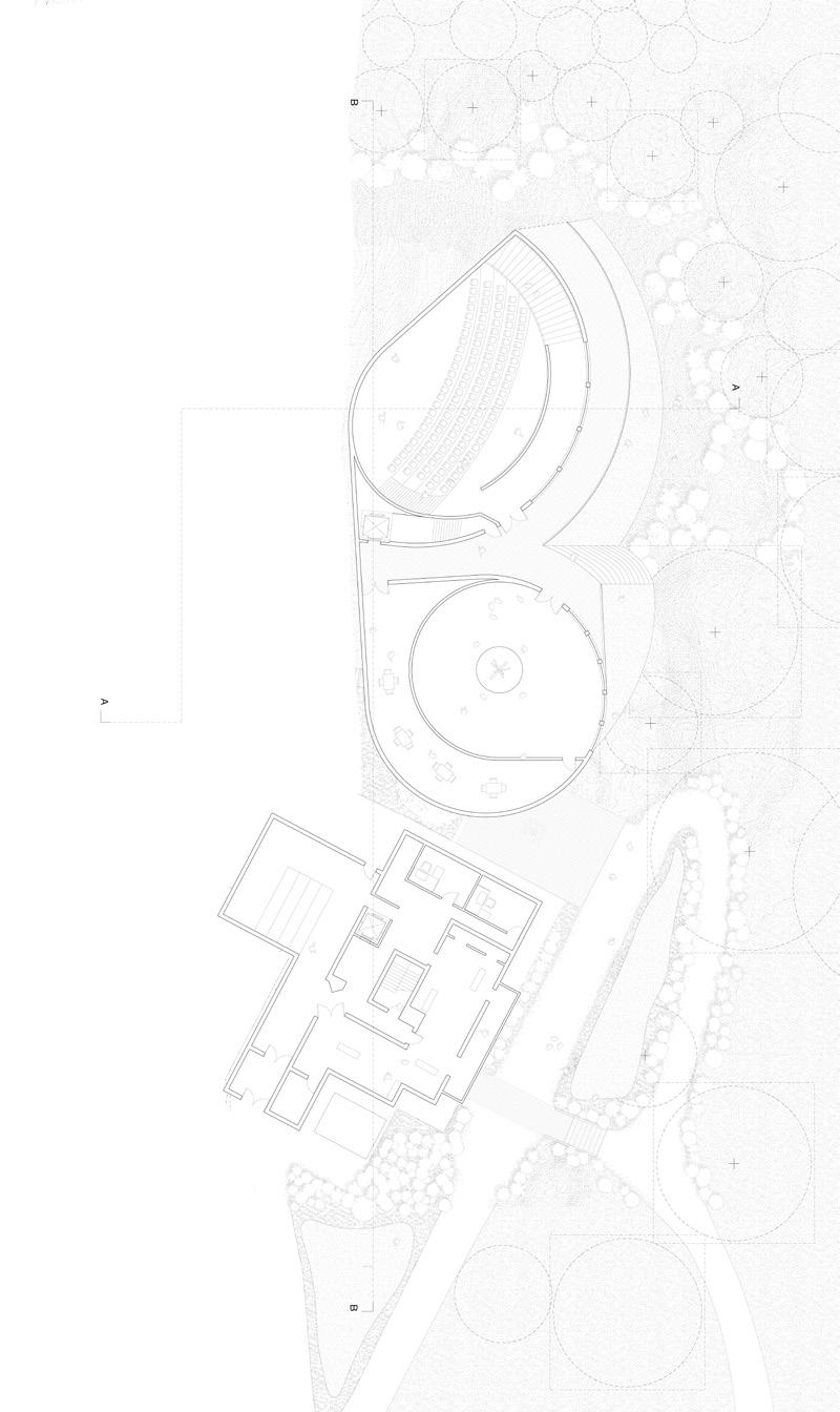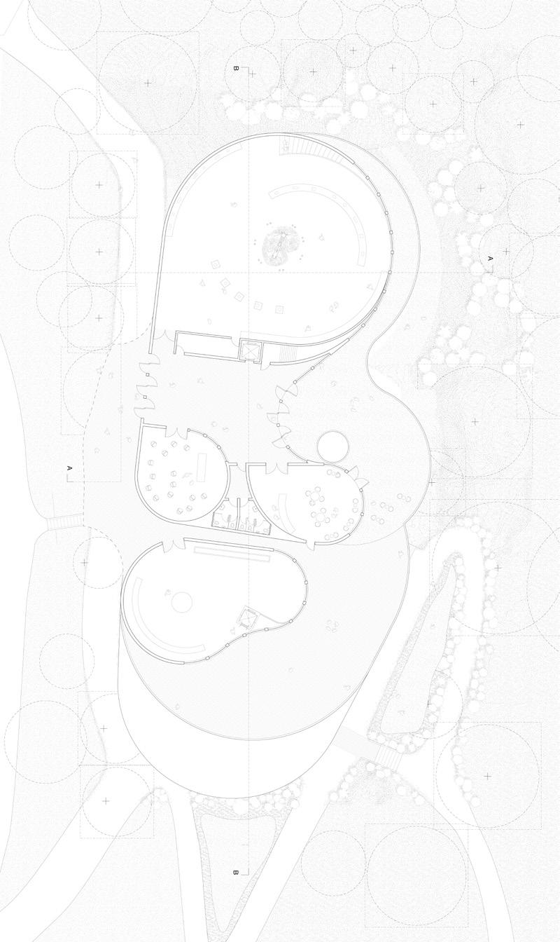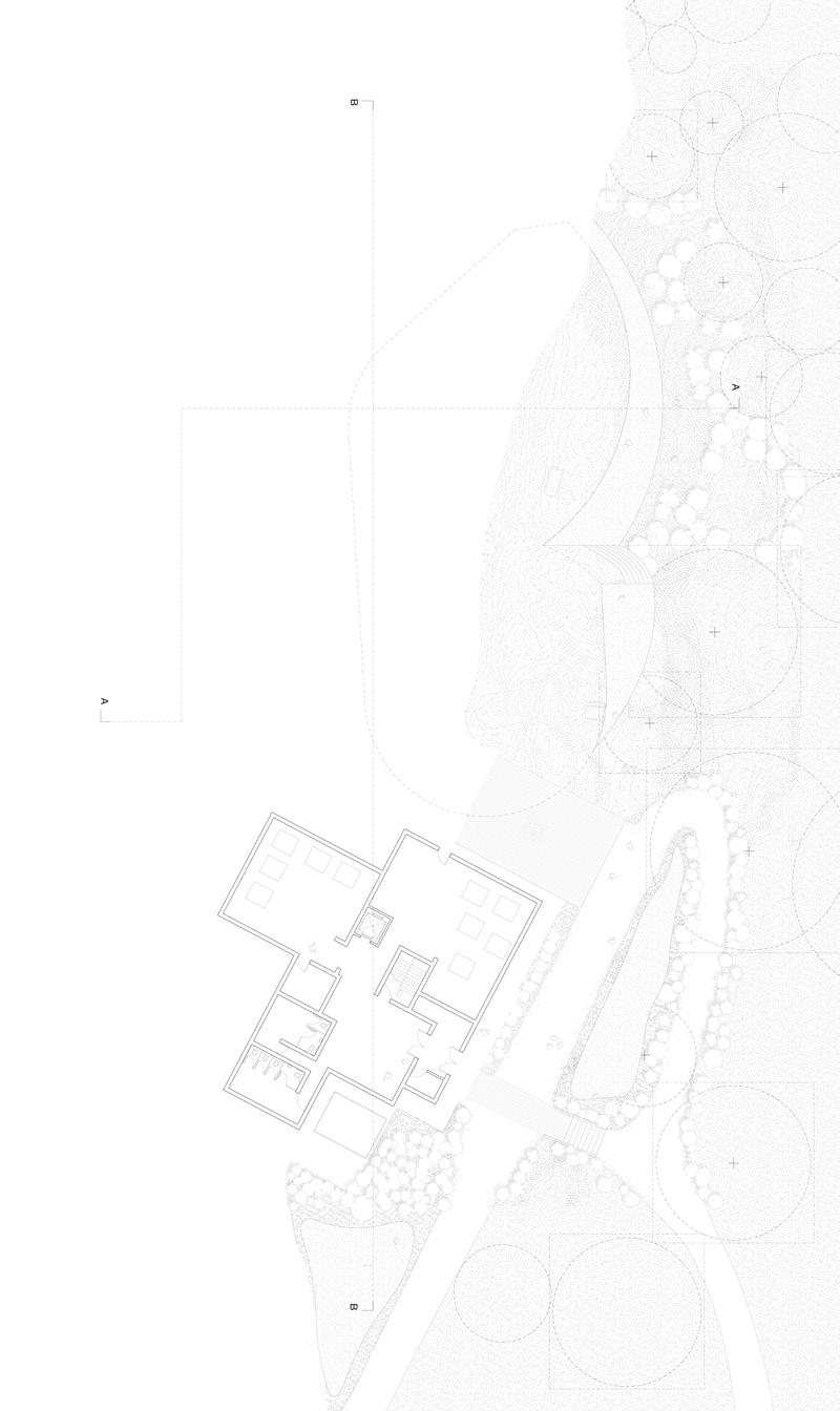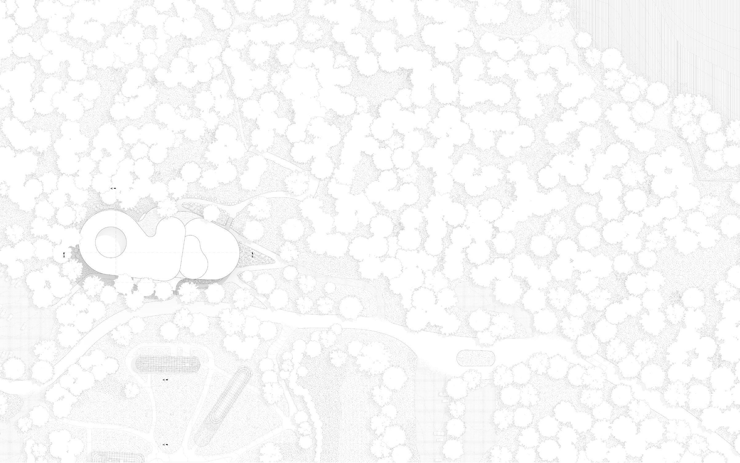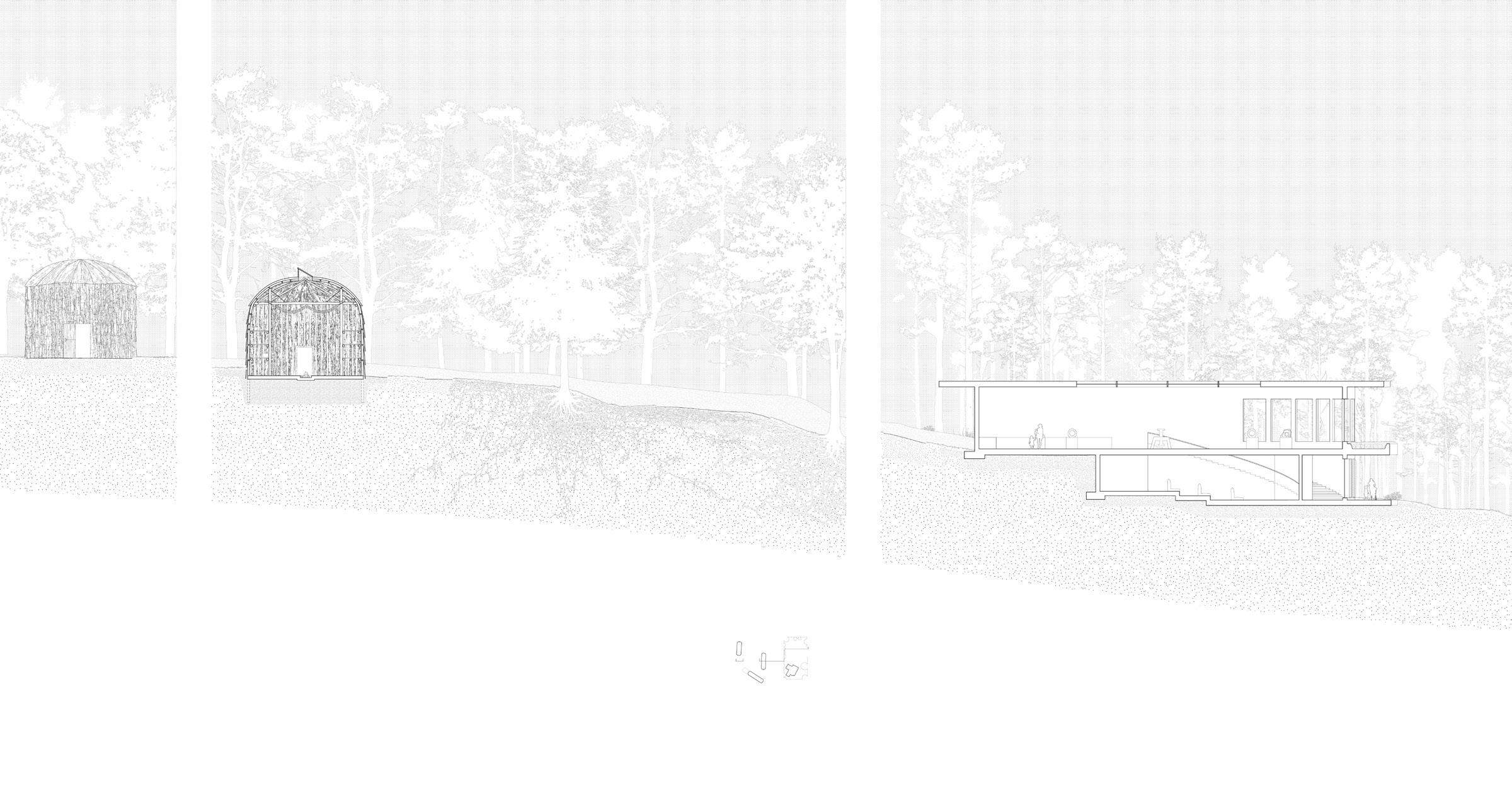 The design of this museum draws inspiration from Ursula Johnson’s basket-weaving performance, where materials encapsulate memory and spirit. In a similar way, this architecture seeks to preserve and embrace the site, letting it tell its own story. Just as Crawford Lake’s waters wrap around and protect the history within, the building’s form follows the land, integrating seamlessly with the existing visitor center, trees, and sloped terrain. Instead of cutting into the site, the design respects its topography by shaping the floor plates to follow the natural height differences, creating a smooth transition between architecture and landscape. This approach allows the building to "hug" the land, embedding itself within the site's existing conditions without erasure or disruption.