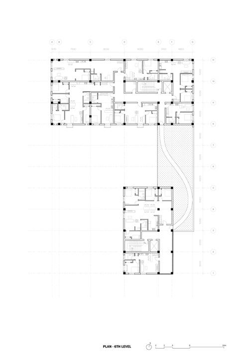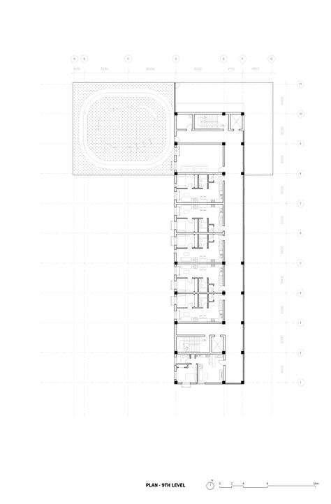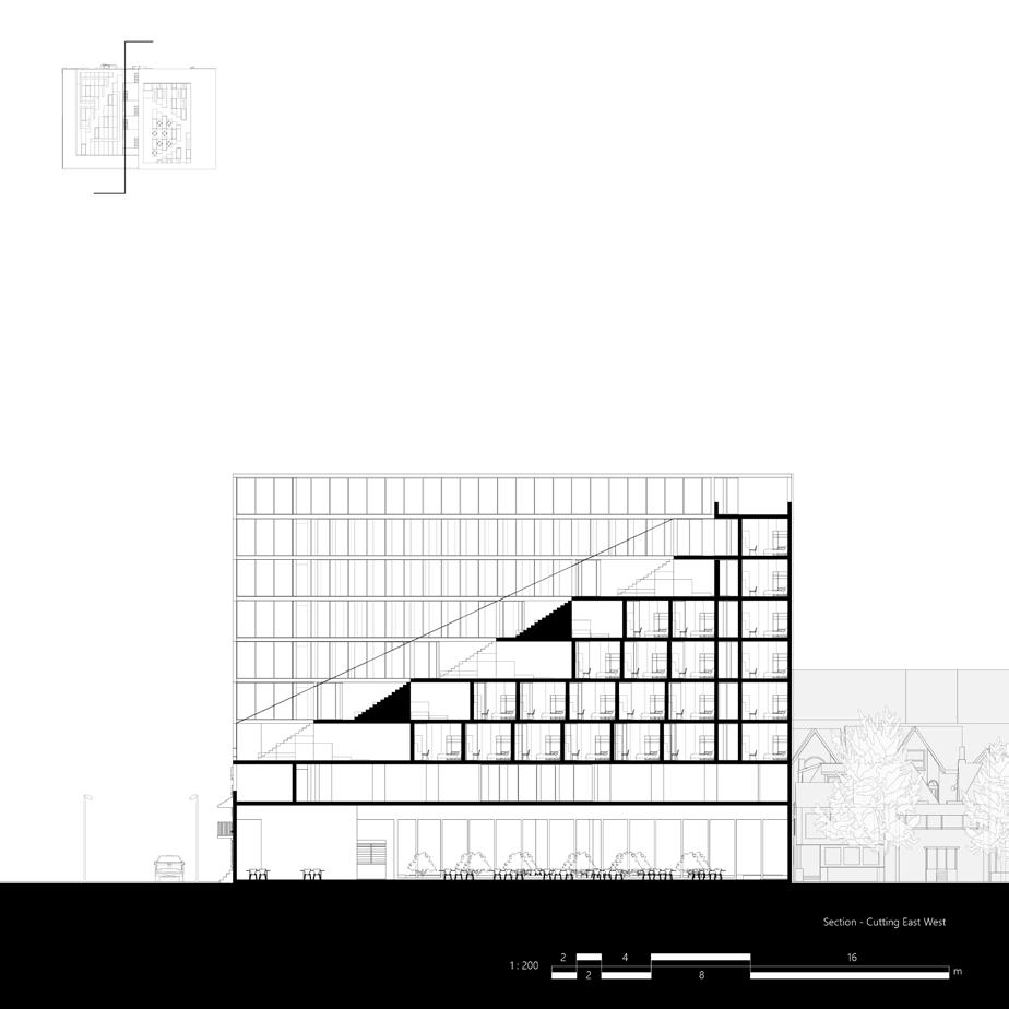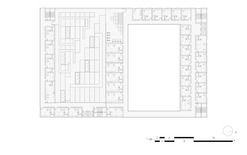 The student residence proposal accommodates 350 beds/bedrooms with amenities and two main unit types: single and double room. Distributed along single and double-loaded corridors, the units’ orientation prevents each other from invading privacy while allows greatest lighting condition.